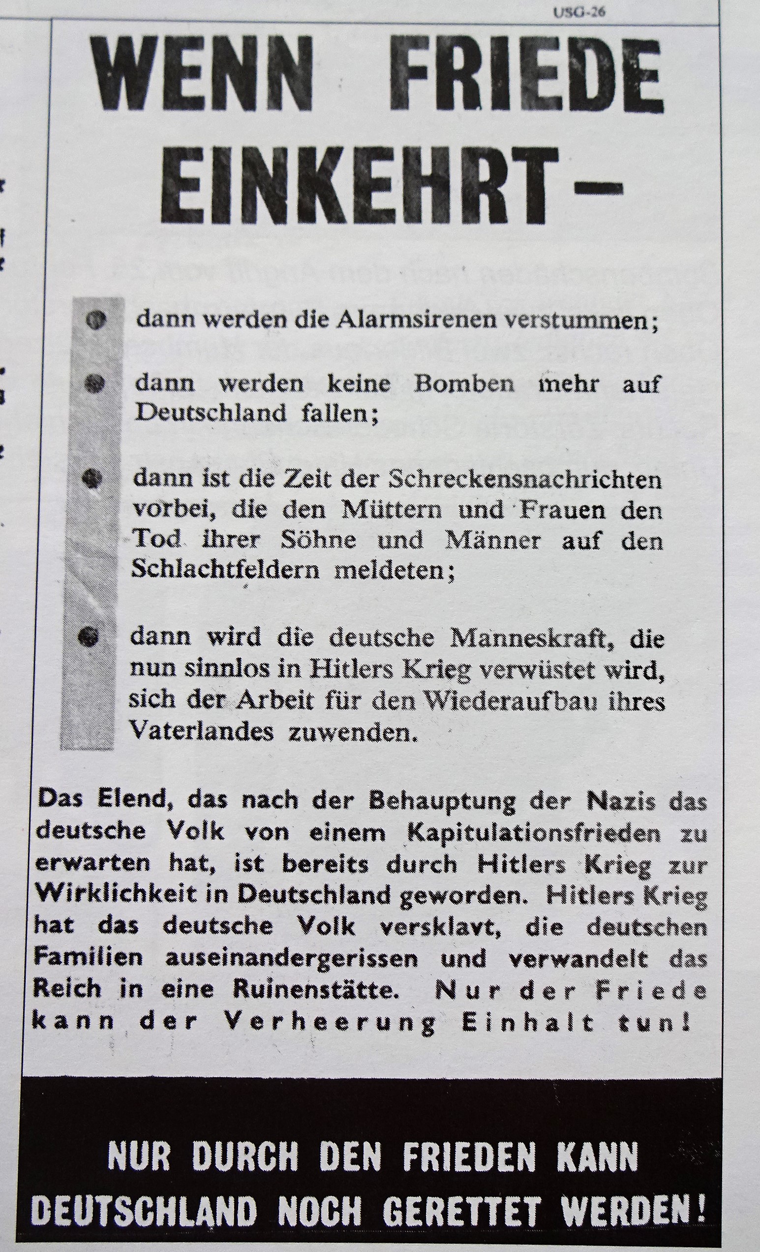 | Dateiinfo (Bild-Unterschrift und Info-Box, automatisch erstellt) | Flugblatt der Alliierten März 1944 über Nürnberg-Fürther Gebiet abgeworfen Lizenz: CC BY-SA 3.0 | ||