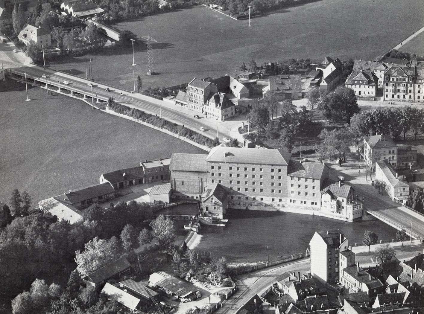 | Beschreibung | Luftbild der Foerstermühle aus den 1950er Jahren (linke obere Ecke: die Billingpost) | ||