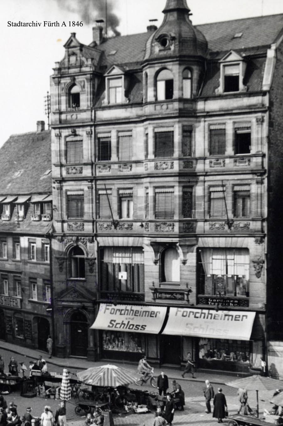 | Dateiinfo (Bild-Unterschrift und Info-Box, automatisch erstellt) | Forchheimer & Schloss; Obstmarkt 1 Urheber: unbekannt<br>Lizenz: Bildlizenz-Stadtarchiv | ||