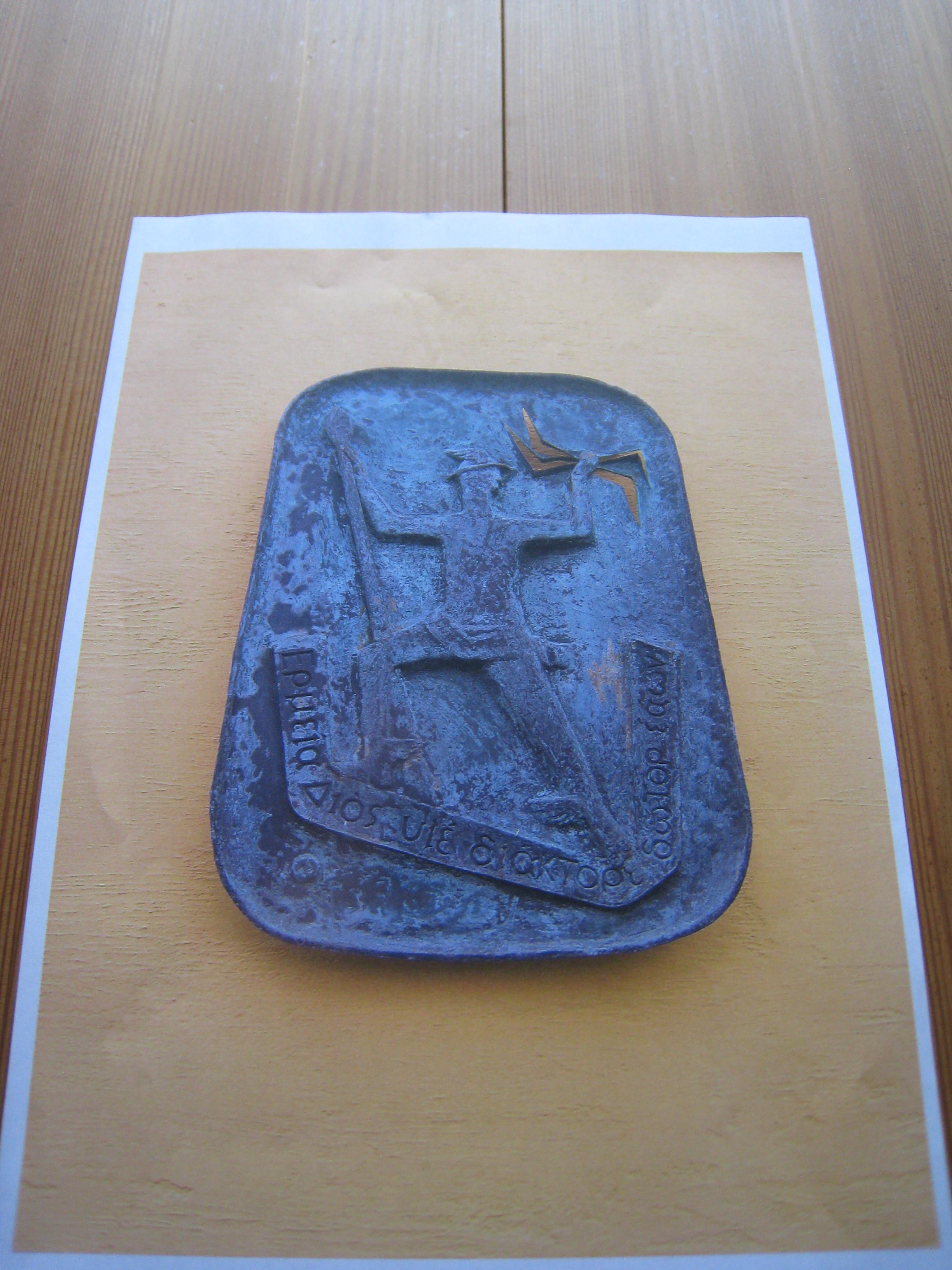| Dateiinfo (Bild-Unterschrift und Info-Box, automatisch erstellt) | Wandtafel, verm. Messing, um 1960, Darstellung: Hermes der Götterbote, Künstler unbekannt Urheber: Thomas Rissmann<br><br><br>Lizenz: CC BY-SA 3.0 | ||