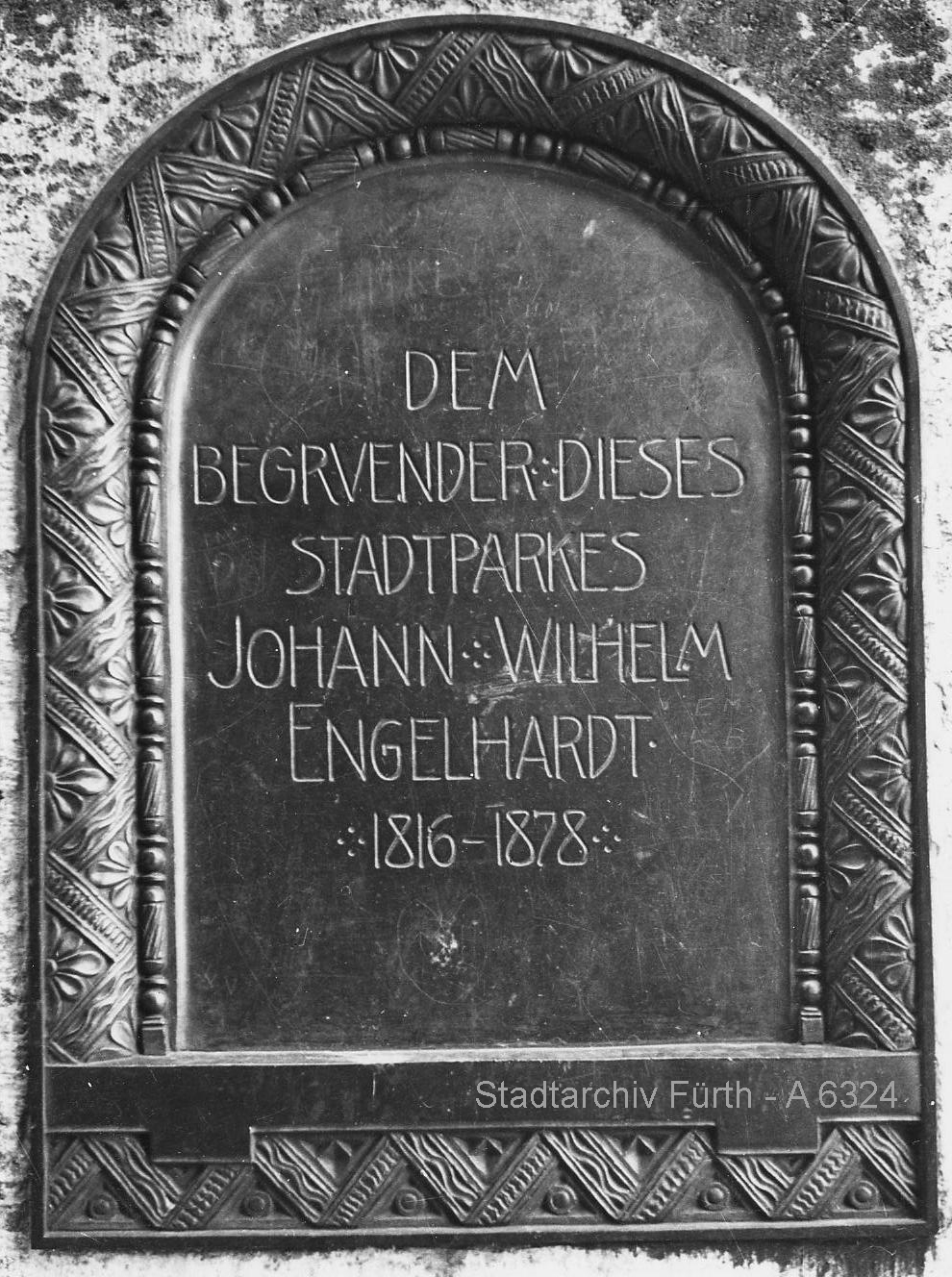 | Beschreibung | Bronzetafel mit Inschrift an der Engelhardtbank über Johann Wilhlem Engelhardt, 1910 | ||