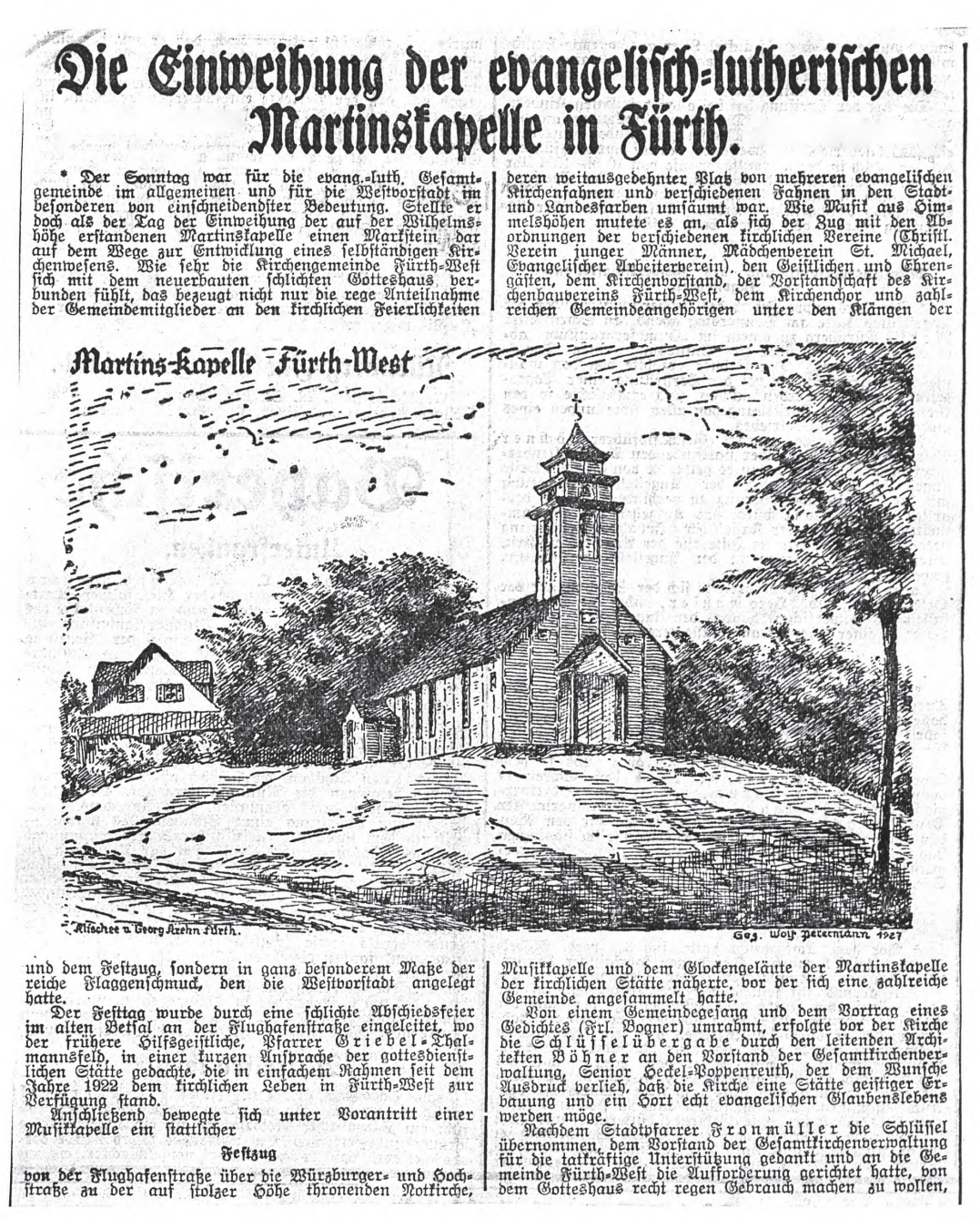 | Beschreibung | Artikel zur Einweihung St. Martin, Fränkischer Kurier, 24. Oktober 1927 | ||