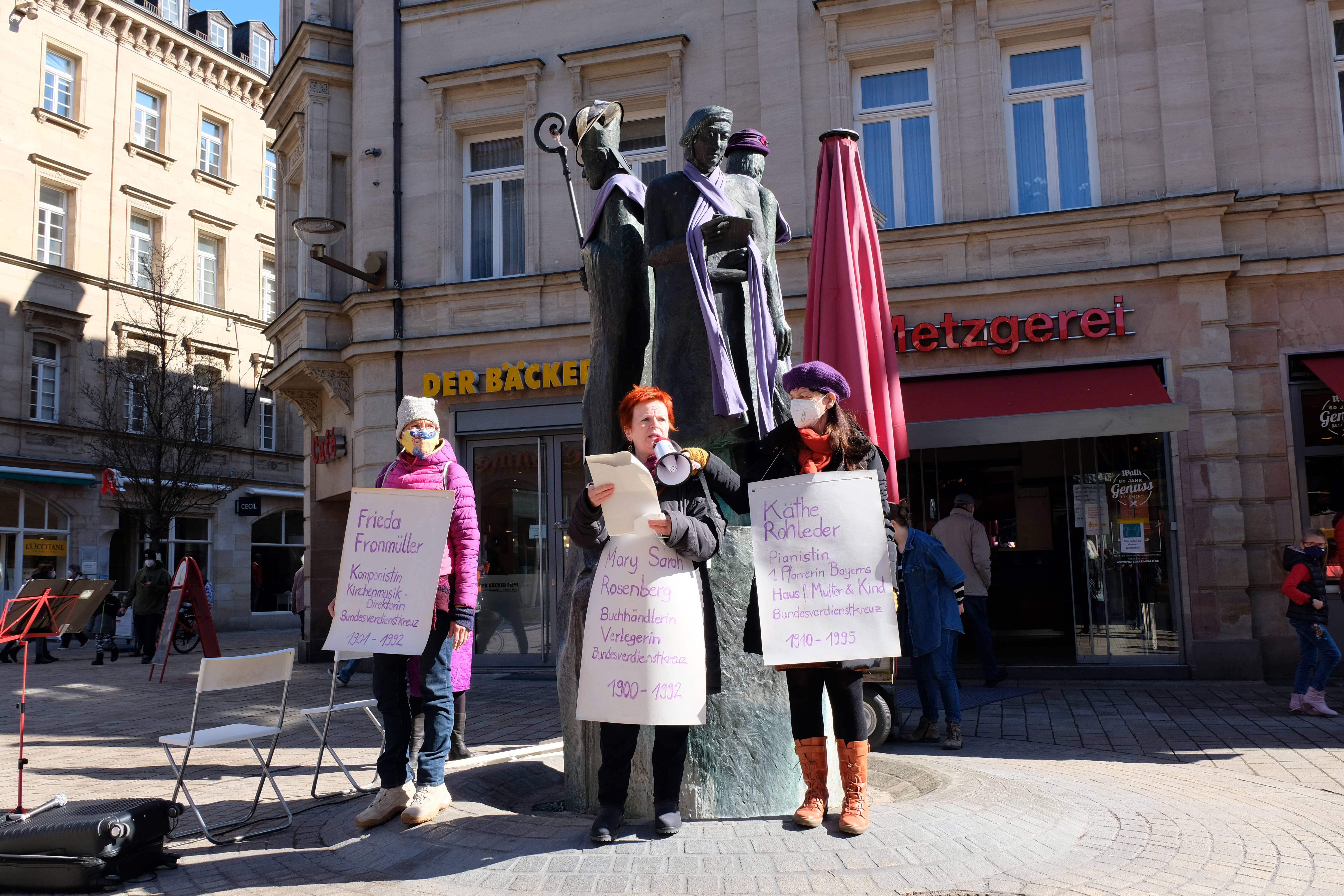 | Beschreibung | Veranstaltung der Unabhängigen Frauen Fürth am Internationalen Frauentag bei der Umwidmung des Dreiherrschaftbrunnen in ein sog. "Dreifrauenbrunnen", Mrz. 2021 | ||