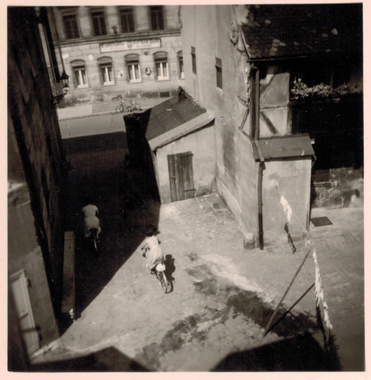 | Beschreibung | Blick über den Fraveliershof in Richtung Gaststätte "Stadt New York". Ganz links Seitengiebel von Lilienstr. 7, ca. 1955 | ||