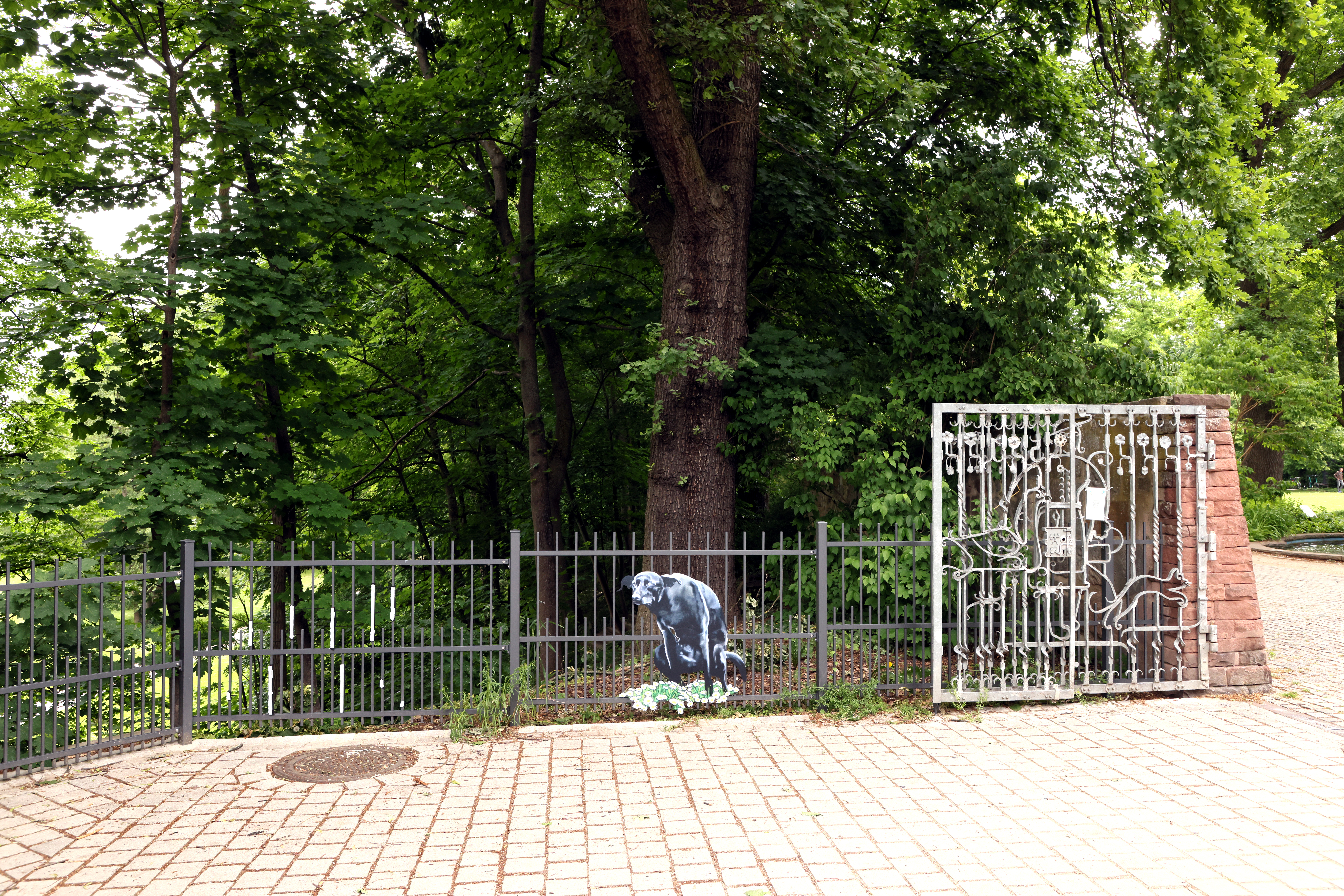 | Beschreibung | Frei Luft Galerie - Der Himmlische und der Irdische - Installation von Petra Krischke, allerdings ist ein Hund bereits "entlaufen" (geklaut worden), Mai 2022 | ||