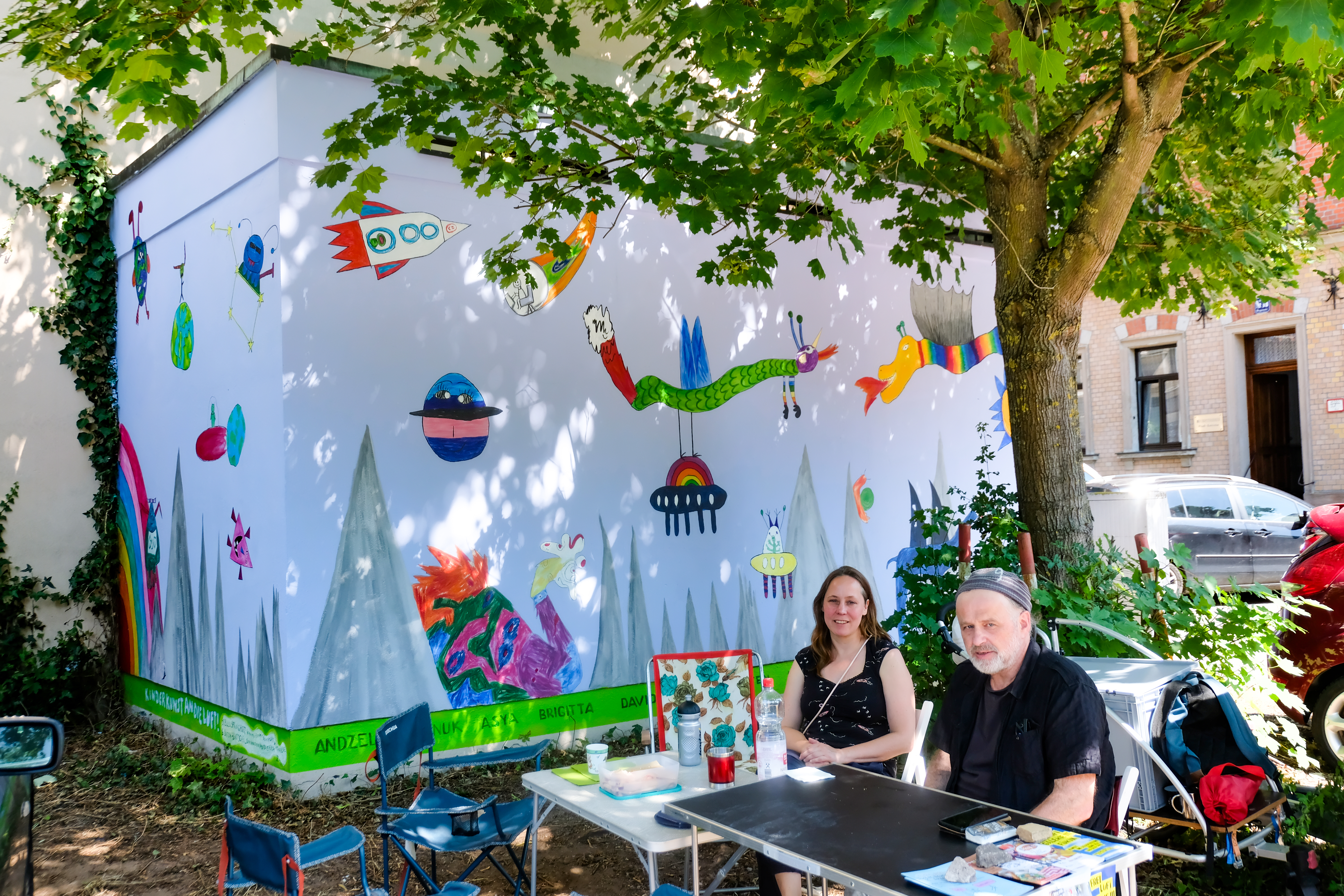 | Beschreibung | Kunstinstallation (An die Luft - Kinderkunst sichtbar machen!) von Anton Hantschel und Stella Springhart in der Bogenstraße während der Frei Luft Galerie 2023, Juni 2023 | ||