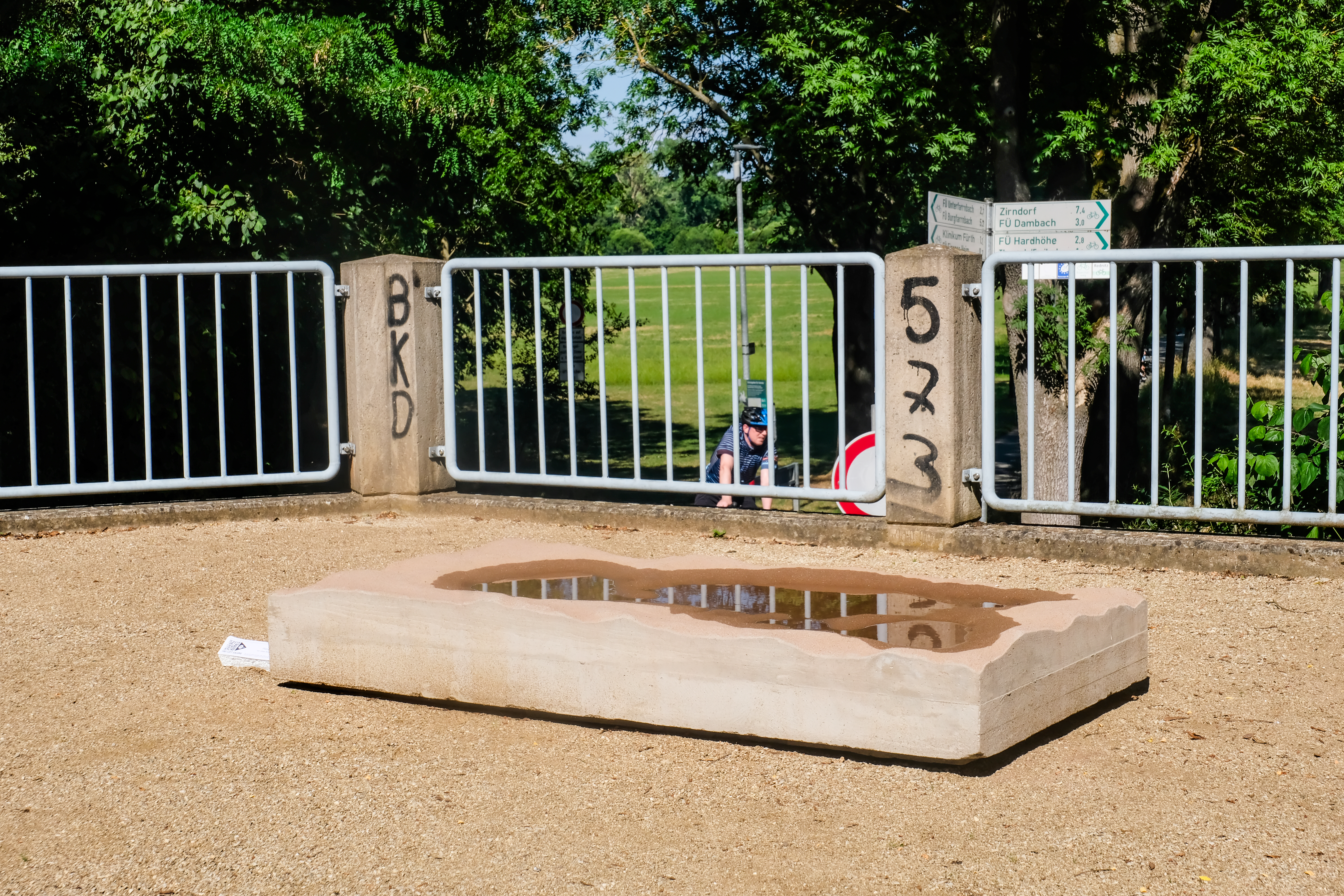 | Beschreibung | Kunstinstallation (Eine Pfütze für die Vacher Straße) von Tobias Rempp an der Vacher Straße während der Frei Luft Galerie 2023, Juni 2023 | ||