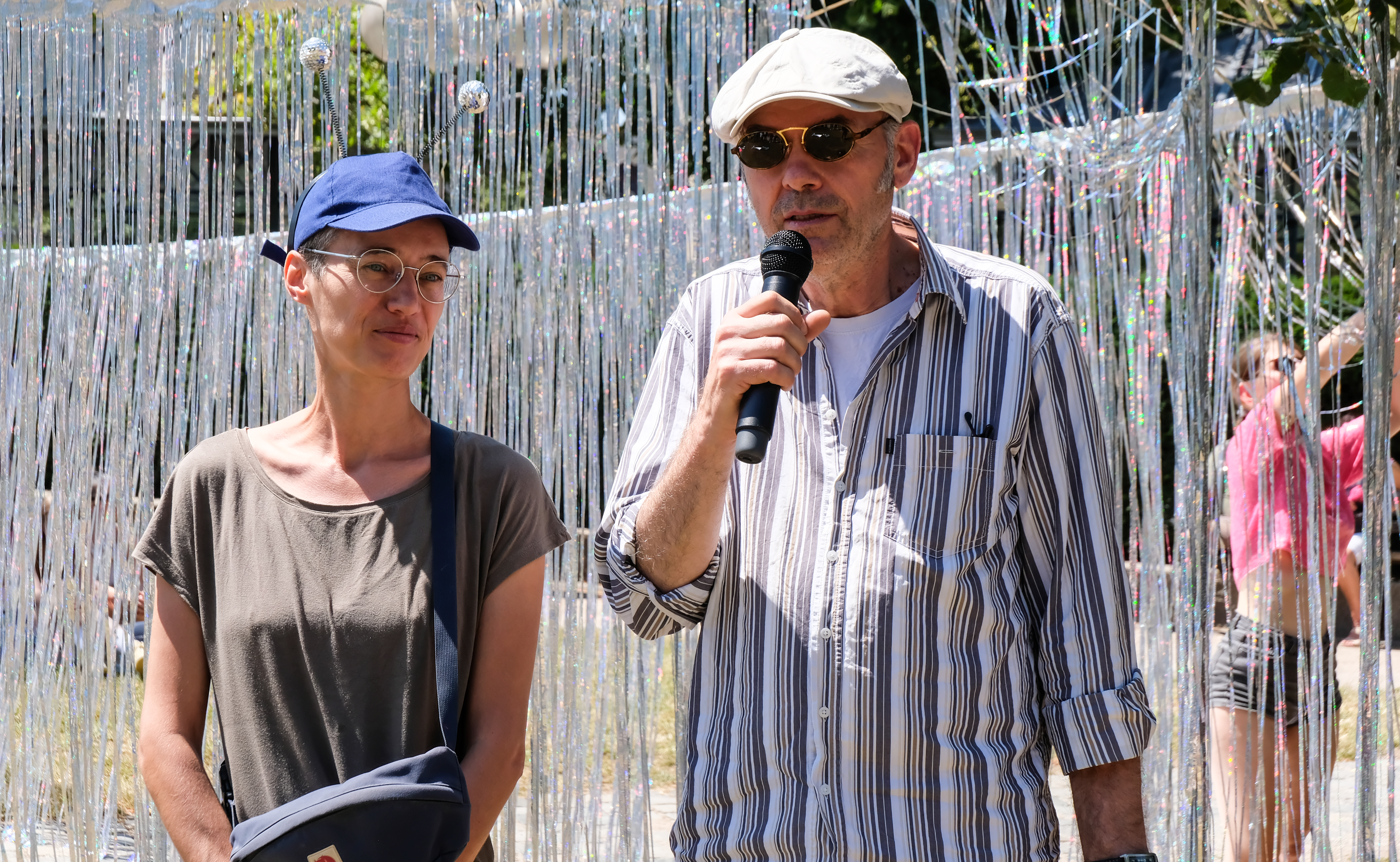 | Beschreibung | Eröffnungen der Frei Luft Galerie durch Sascha Banck und Lutz Krutein vor einer Kunstinstallation von Annika Schweizer zur Eröffnung der Frei Luft Galerie am Bahnhofplatz, Juni 2023 | ||