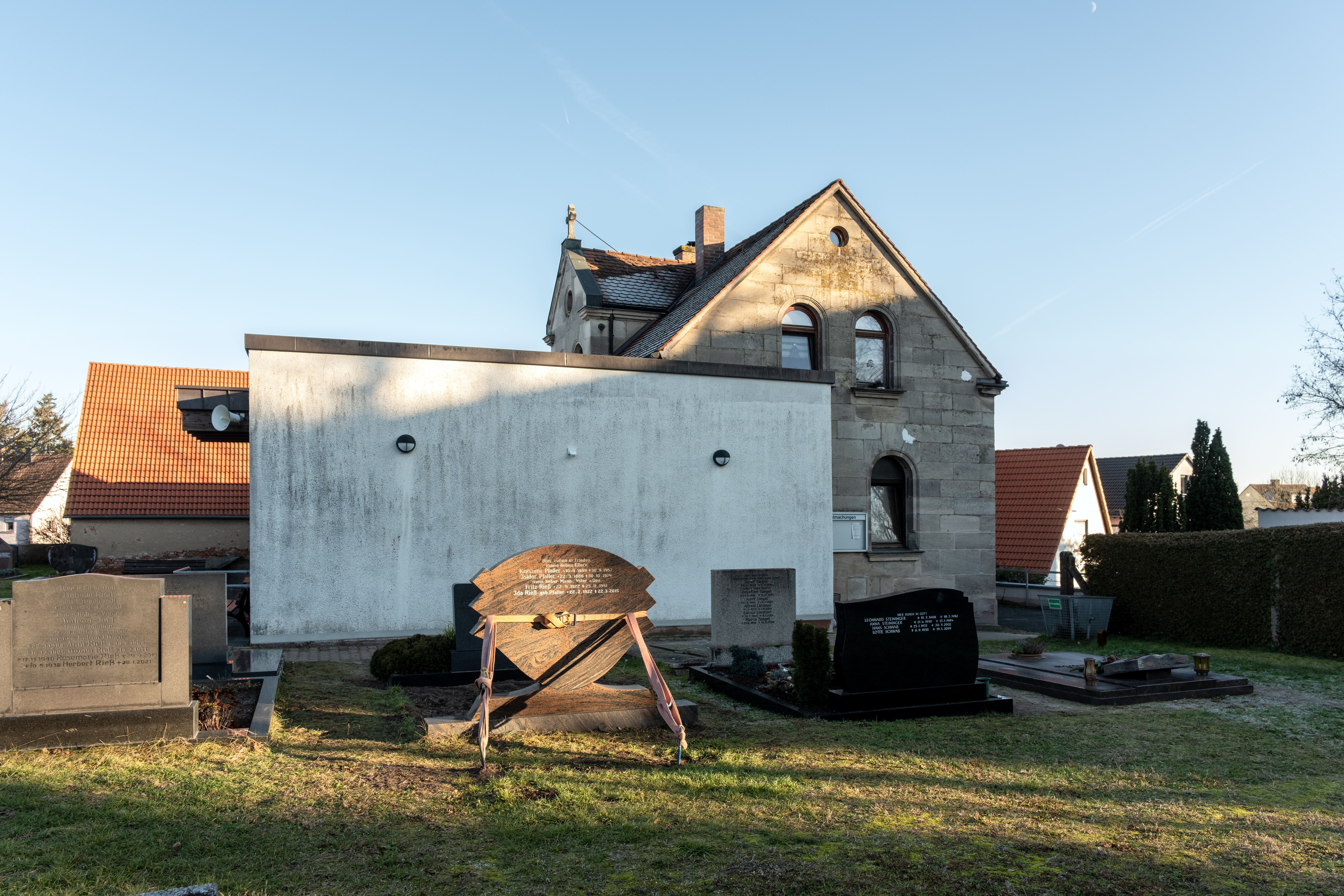 | Beschreibung | Friedhof in Vach, Aussegnungshalle, Dez 2025 | ||