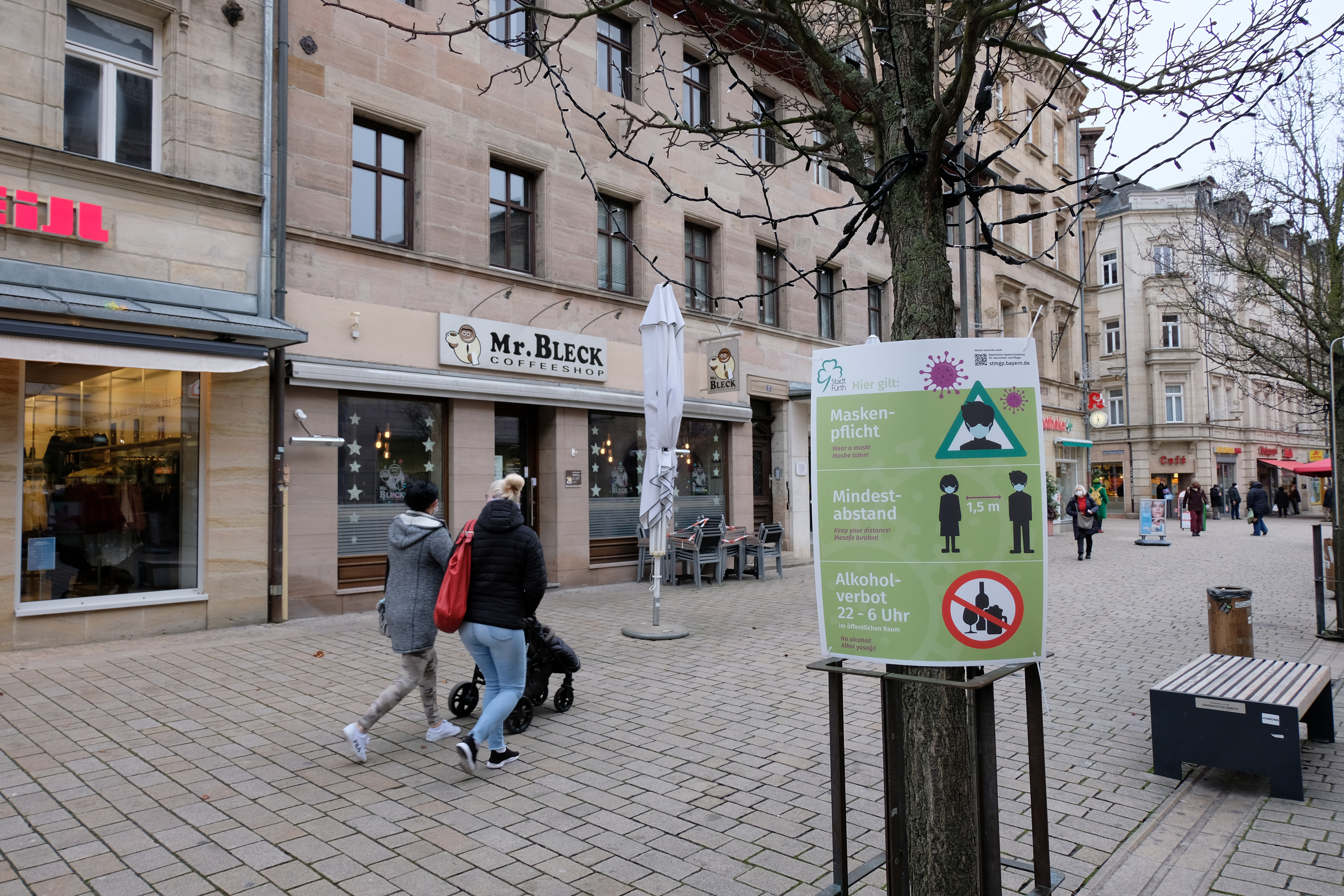 | Beschreibung | Hinweisschild während der COVID-19-Pandemie in Fürth in der Fußgängerzone, Dez. 2020 | ||