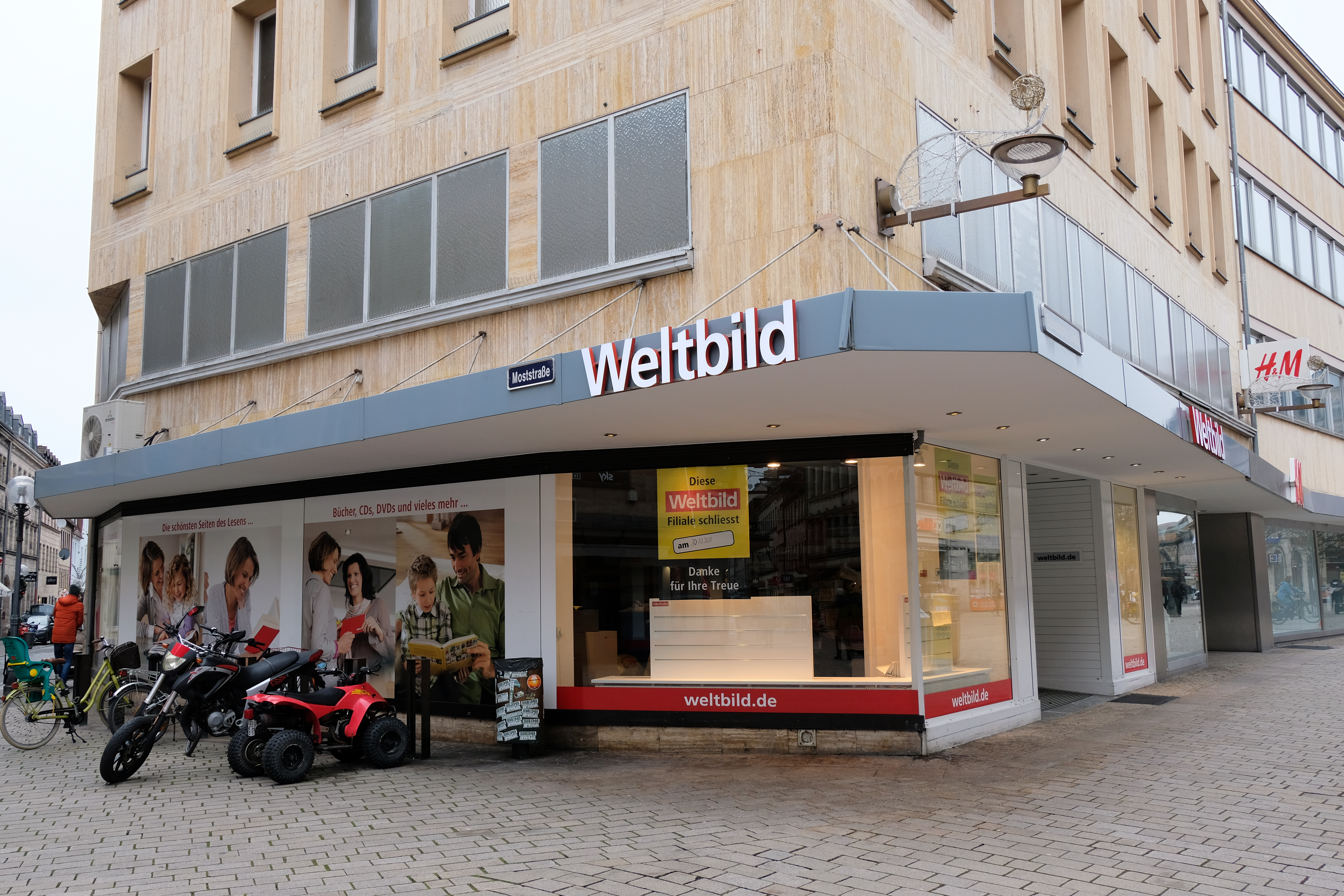 | Beschreibung | Die ehem. Weltbild-Filiale in der Fußgängerzone, die zum 30. Dezember 2020 während der COVID-19-Pandemie ihre Filiale in Fürth schloss, Dez. 2020 | ||