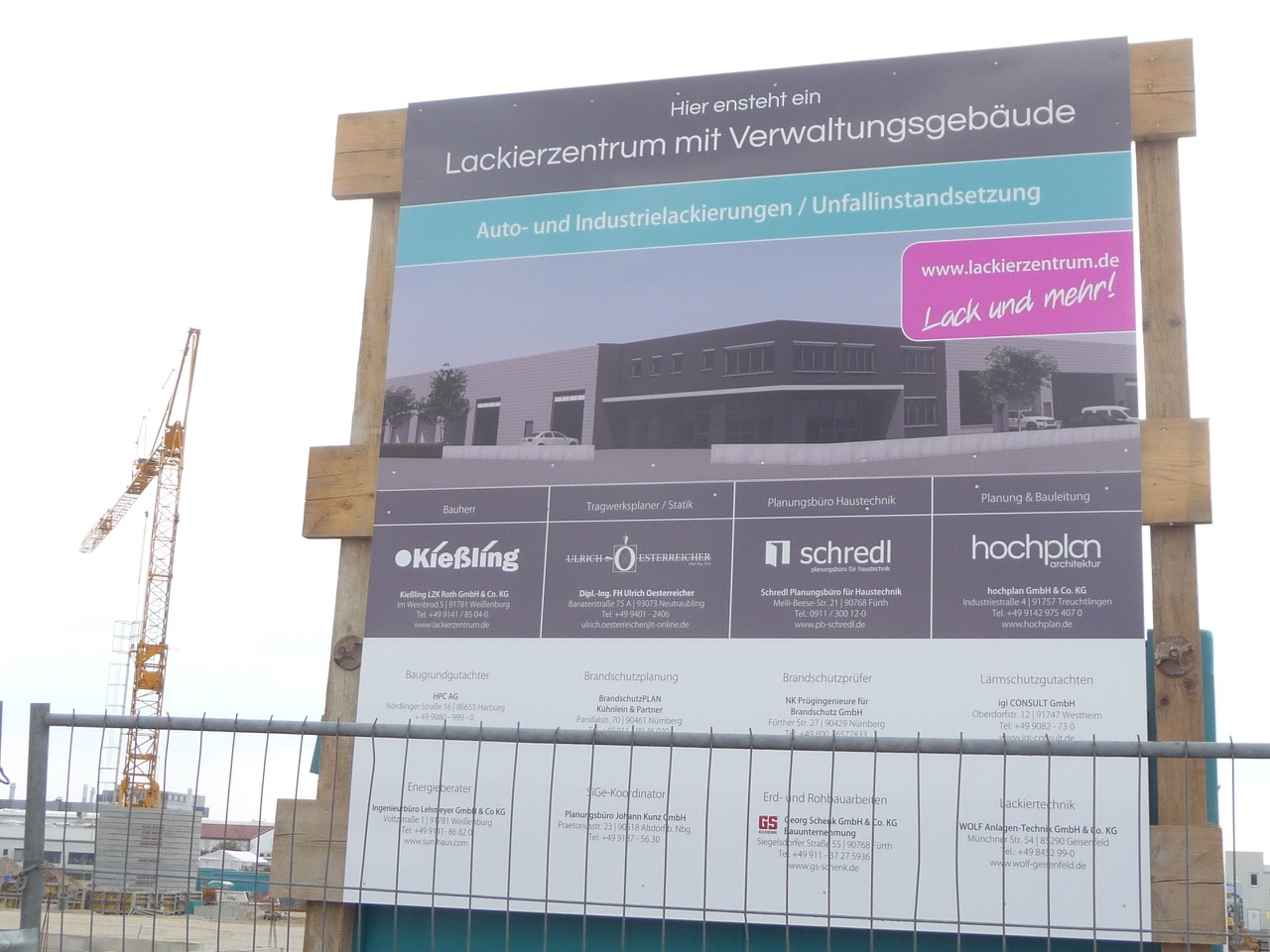 | Beschreibung | Bauschild für den Neubau eines Lackierzentrums in der Futuriastraße | ||