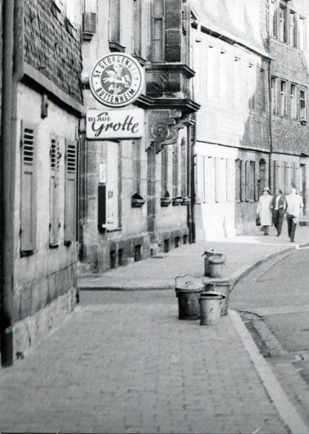 | Beschreibung | Gaststätte Blaue Grotte in der Lilienstraße 12 und weitere Häuser der Lilienstraße, ca. 1970 | ||