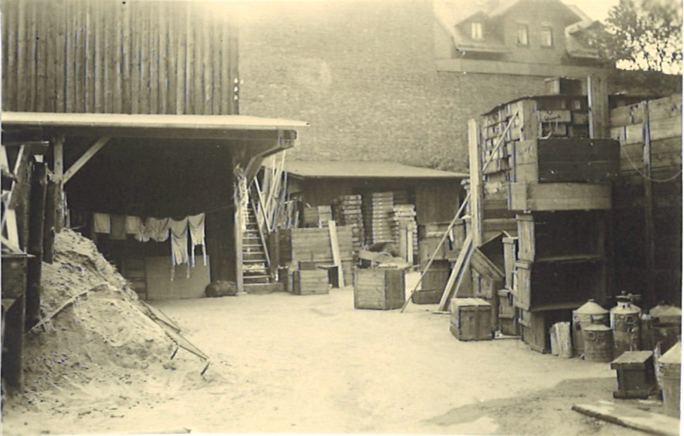 | Beschreibung | Fabrikgelände von Göso in der Dr.-Mack-Str. 32 - 38 während des 2. Weltkriegs. Im Hintergrund rechts oben der Seitengiebel von Lange Straße 53 | ||