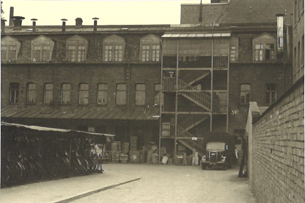 | Beschreibung | Fabrikgelände von Göso in der Dr.-Mack-Str. 32 - 38 während des 2. Weltkriegs. Fertigung von Rüstungsgütern. Ganz rechts Mauer zum Nachbargrundstück (Wäschefabrik mifra). | ||