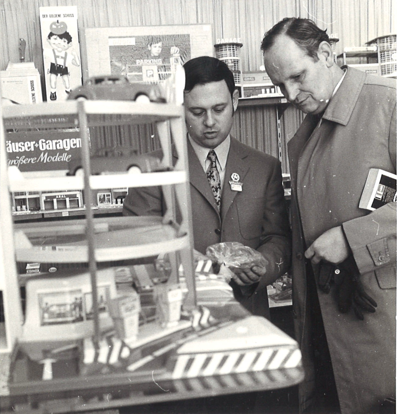 | Beschreibung | Peter Götz und OB Kurt Scherzer bei einer Spielwarenpräsentation | ||
