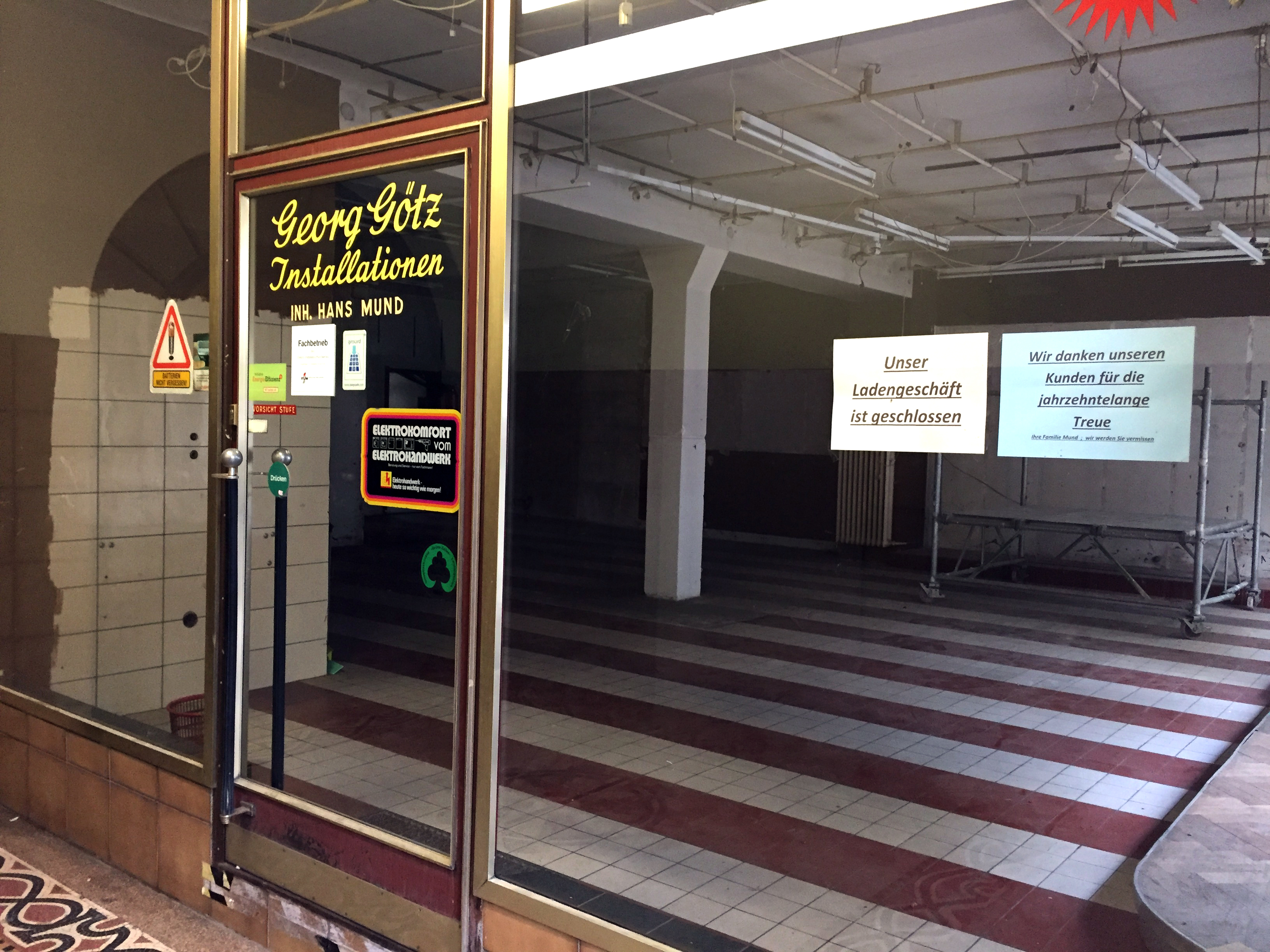 | Beschreibung | Schaufenster des ehem. Elektro Götz in der Mathildenstraße 1 nach der Schließung, Okt. 2018 | ||