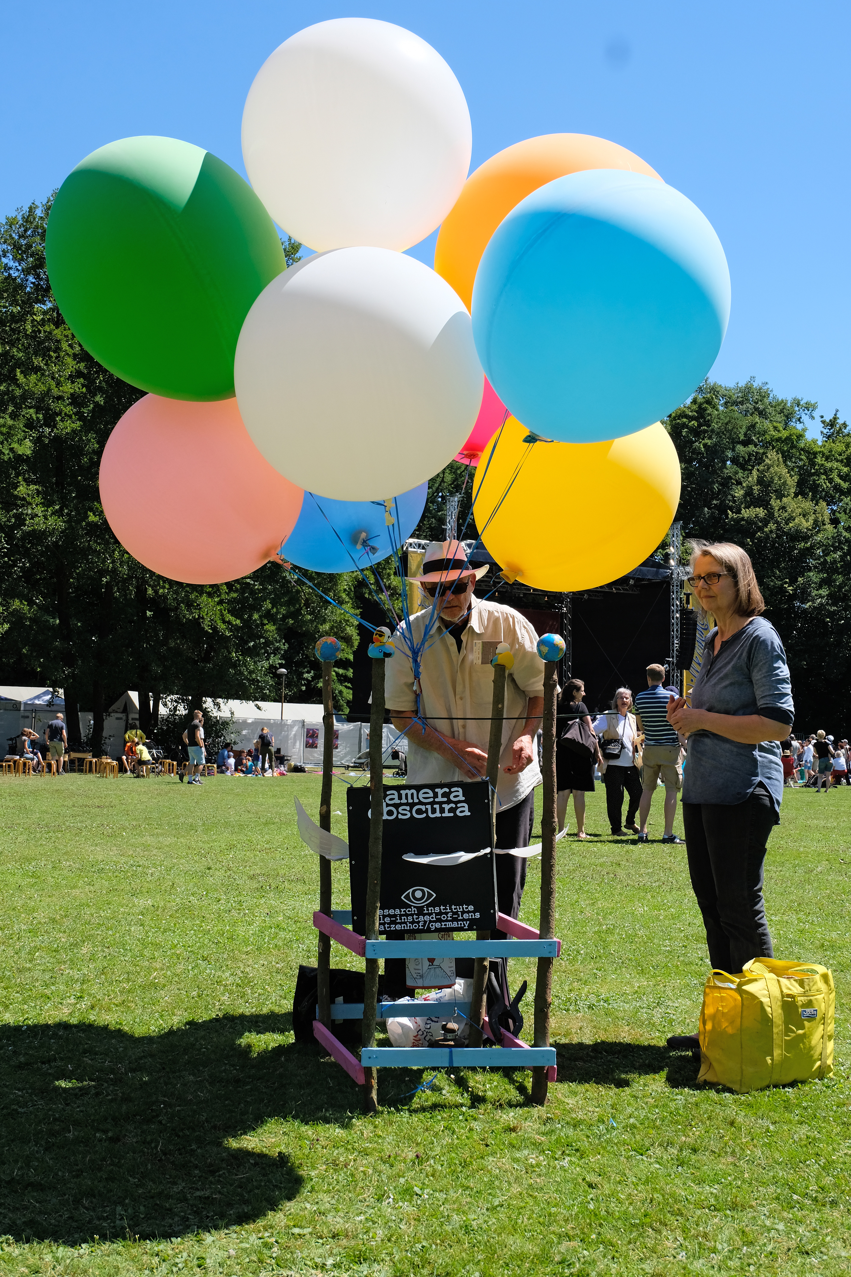 | Beschreibung | Günter Derleth mit seiner fliegenden Camera Obscura beim Luftfest im Stadtpark, 2018 | ||