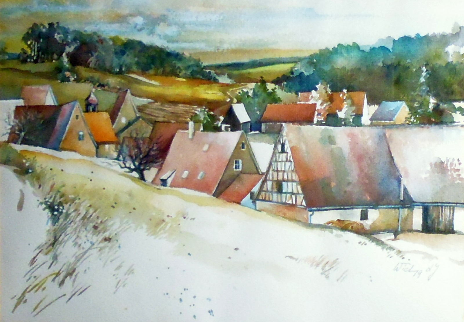 | Beschreibung | Günter Wich: Aquarell "Leutzdorf". Signiert mit Wich79 d. J. | ||