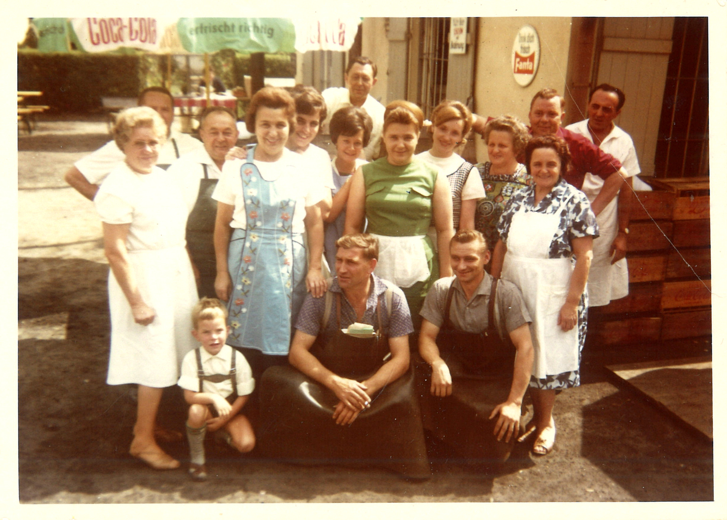| Dateiinfo (Bild-Unterschrift und Info-Box, automatisch erstellt) | Die Wirtsmannschaft vor der Vereinsgaststätte, 1965 Urheber: unbekannt<br><br>Lizenz: CC BY-SA 3.0 | ||