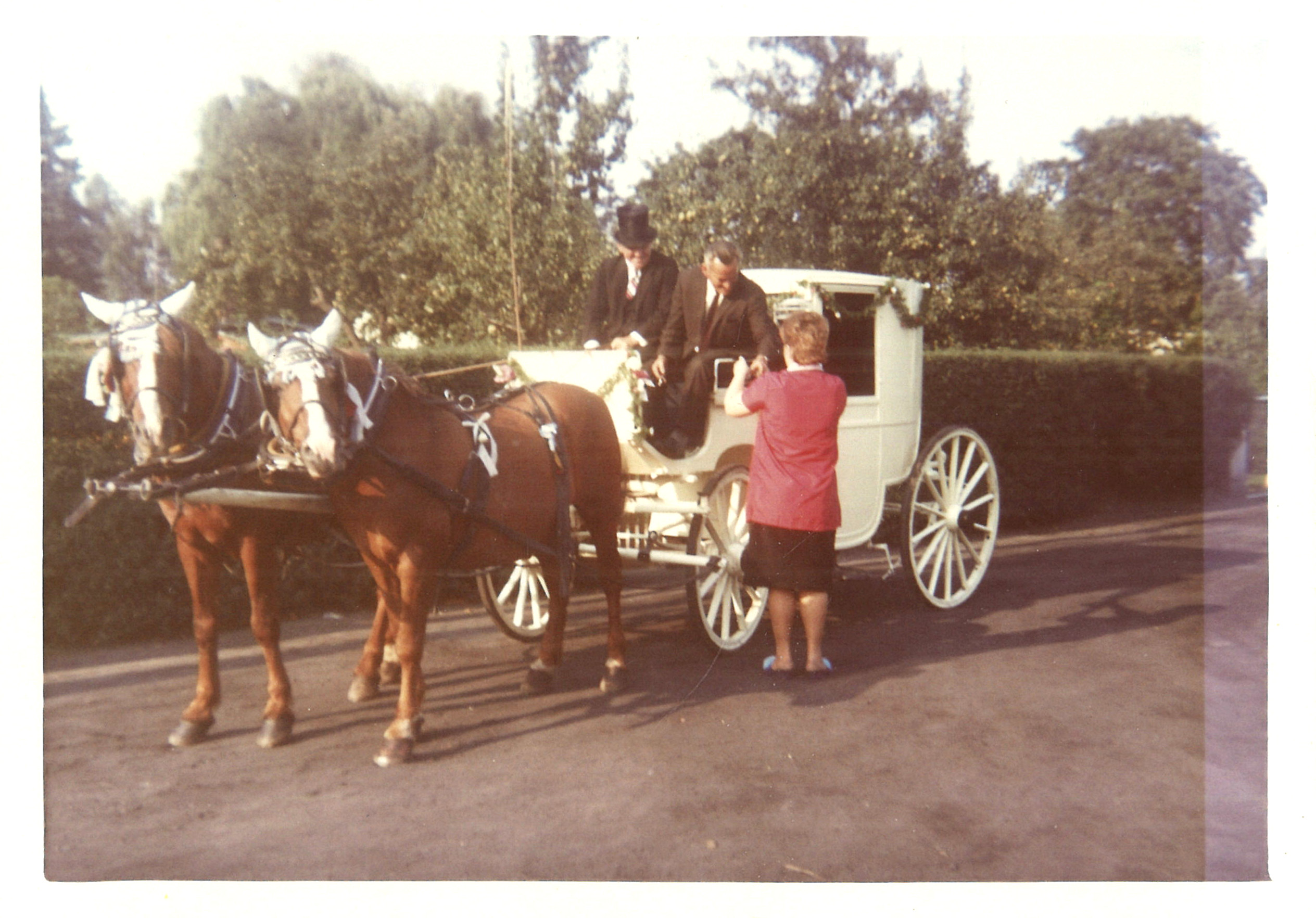 | Beschreibung | Hochzeitskutsche auf dem Hauptweg in Kolonie I, ca. 1966 | ||