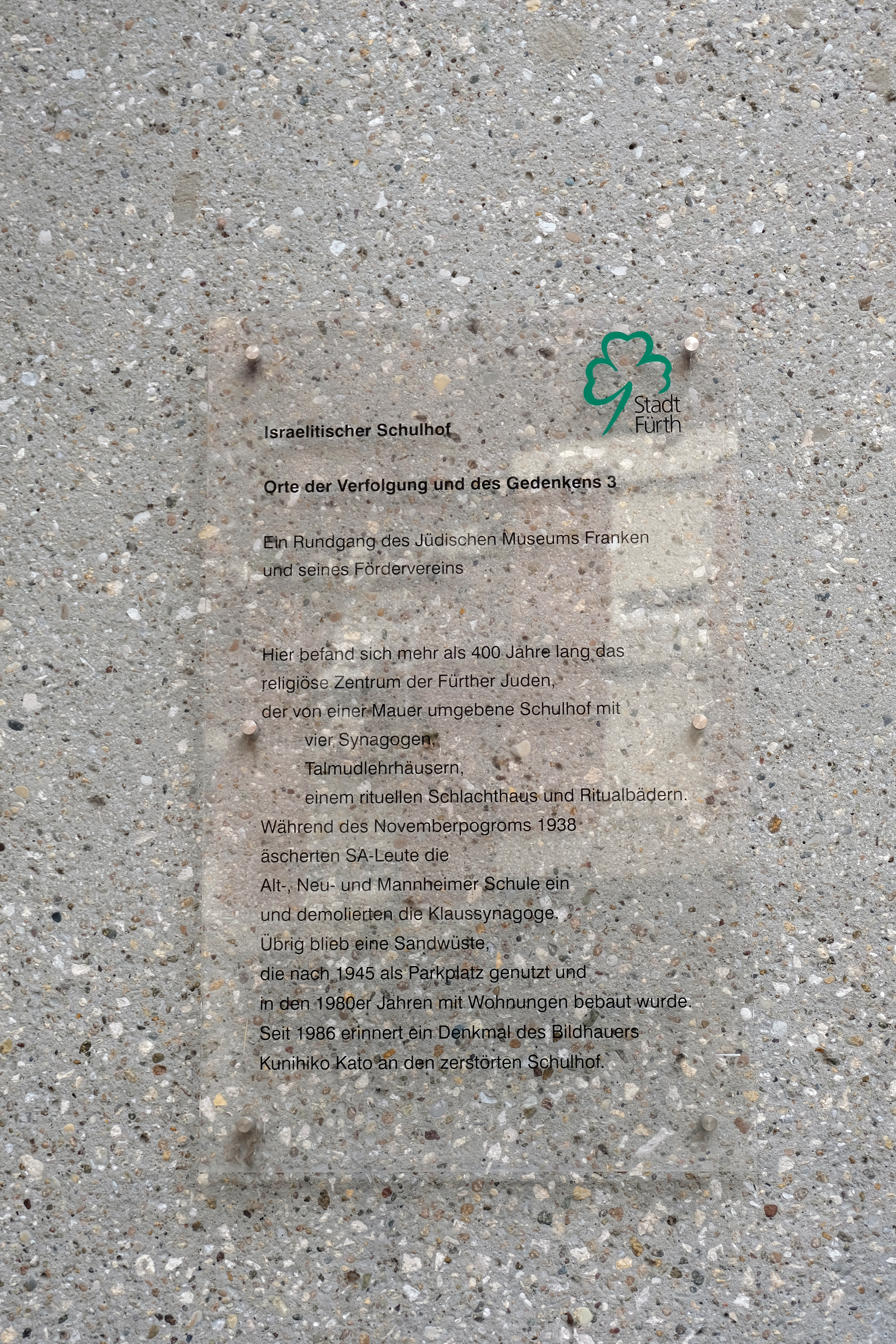 | Beschreibung | Gedenktafel Israelitischer Schulhof - Orte der Verfolgung und des Gedenkens zur Reichspogromnacht am 9. November 1938 | ||