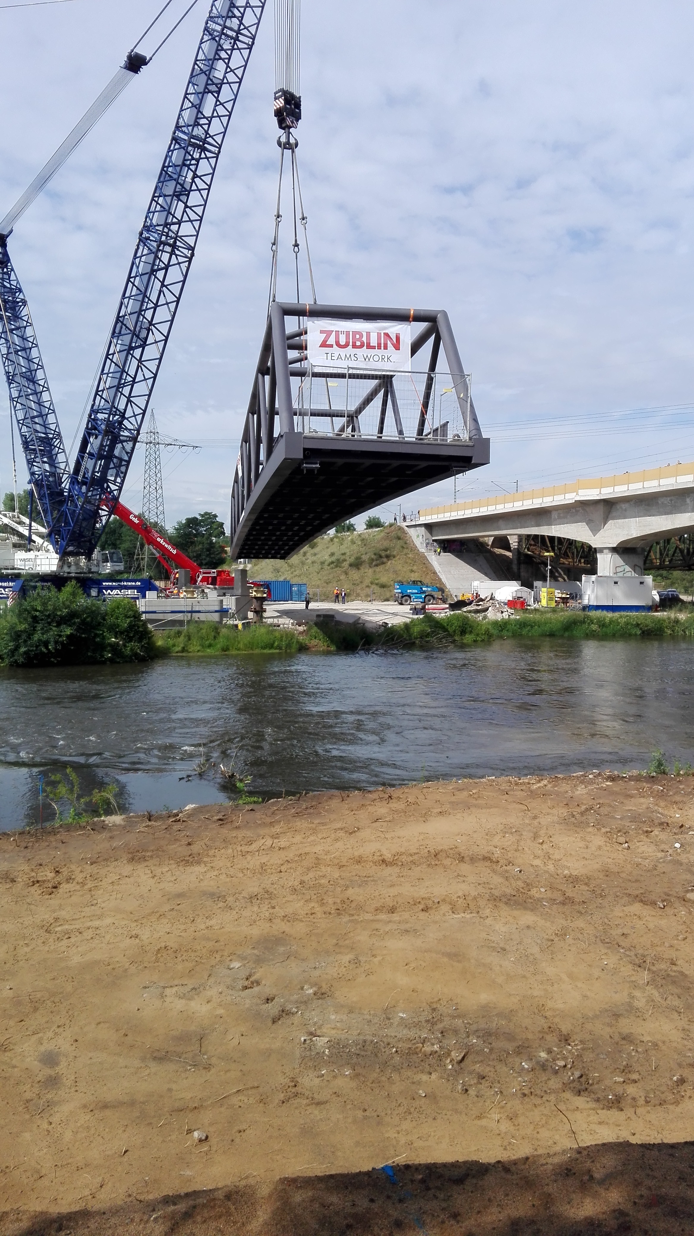 | Beschreibung | Einheben der neuen Geh- und Radwegbrücke Regnitz am 8. Juni 2020 | ||