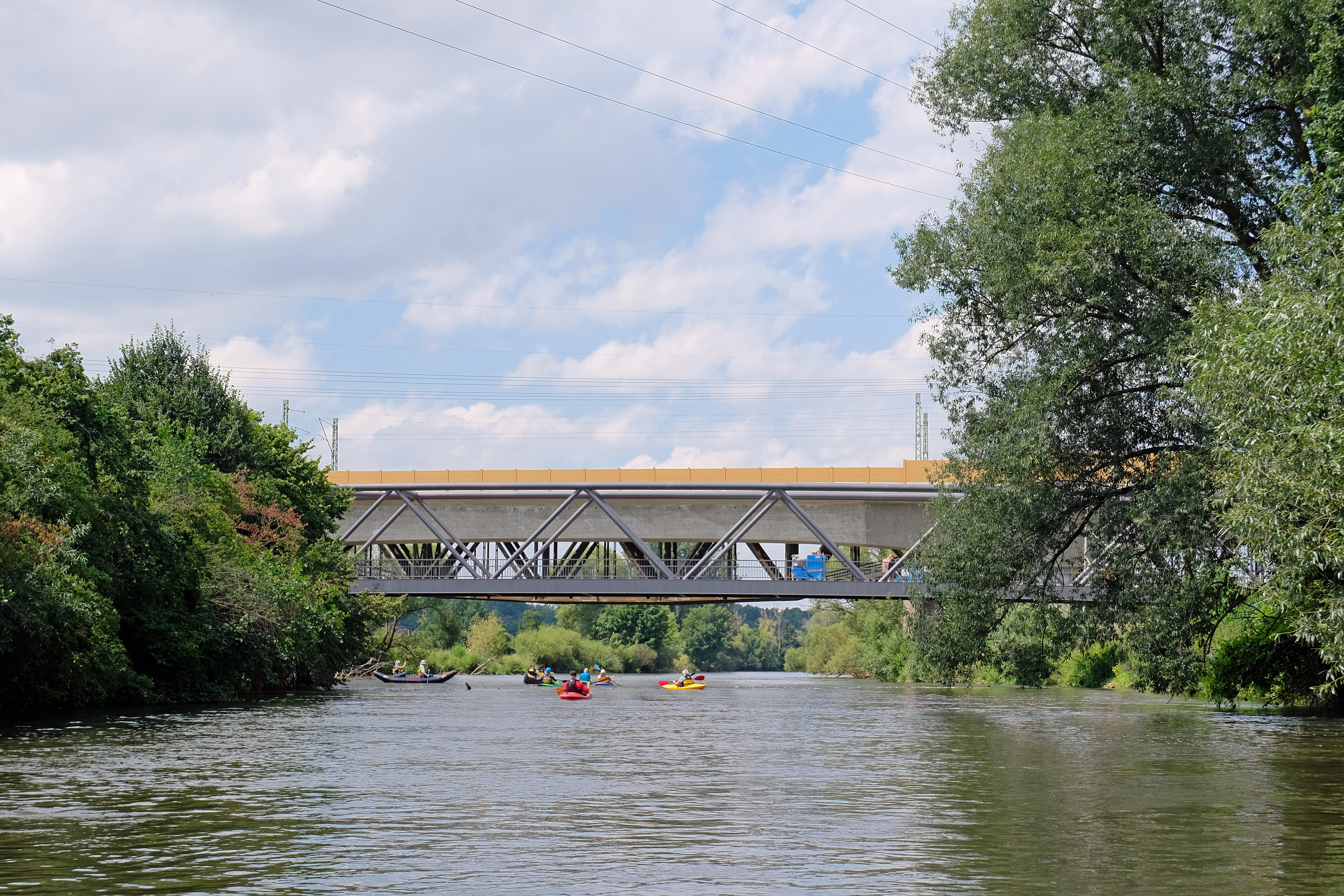 | Beschreibung | Die neue Geh- und Radwegbrücke über die Regnitz vom Fluss aus gesehen, Juli 2020 | ||