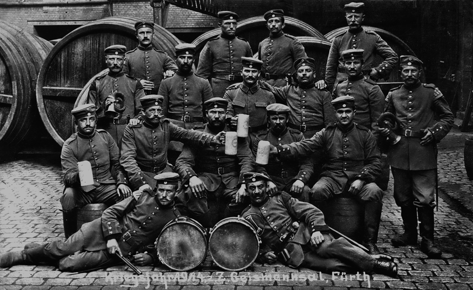 | Dateiinfo (Bild-Unterschrift und Info-Box, automatisch erstellt) | 1. Weltkrieg: Soldatengruppe bei der Brauerei Geismann - Aufnahme aus dem August 1914 Urheber: unbekannt<br><br>Lizenz: CC BY-SA 3.0 | ||