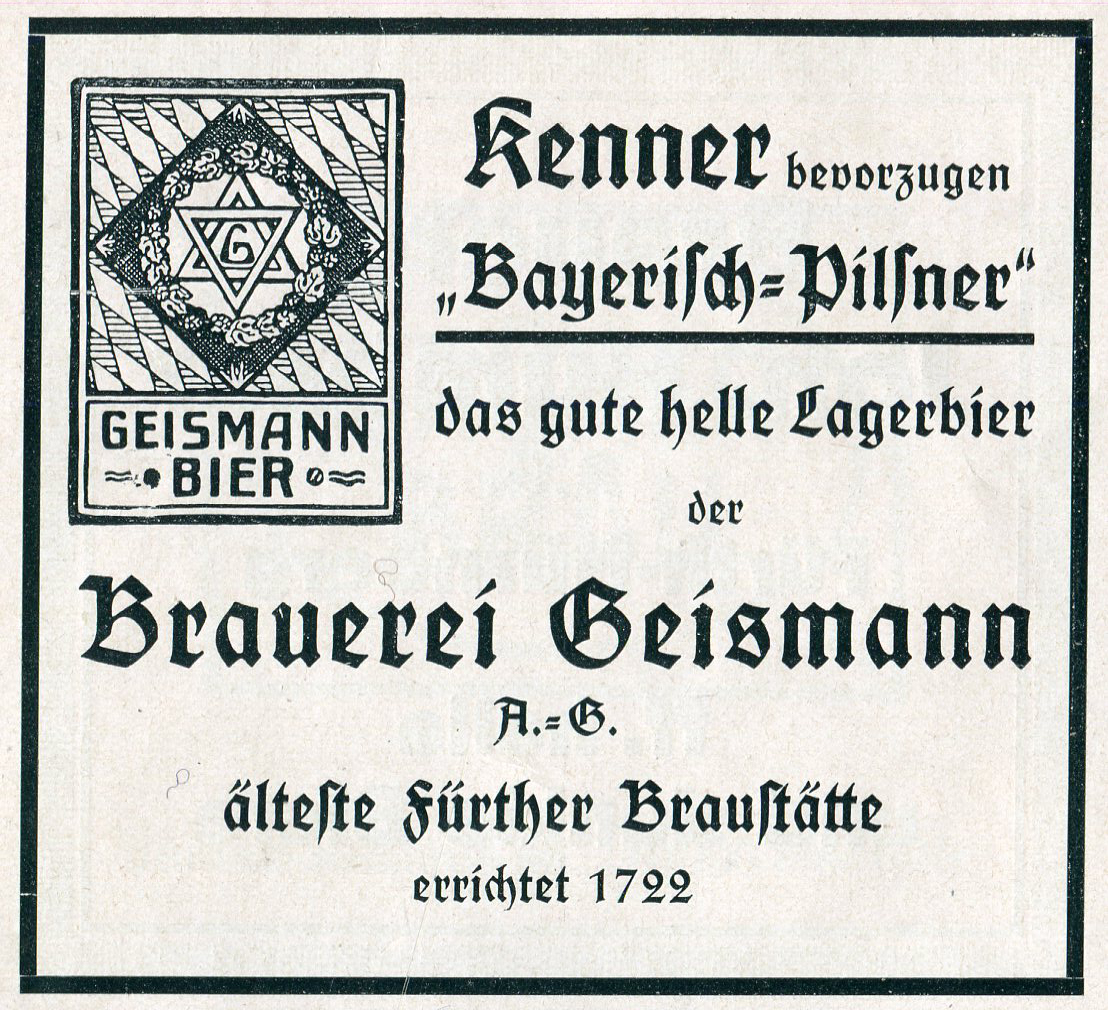 | Beschreibung | Werbung der Brauerei Geismann AG Mitte/Ende 1920er Jahre für das »Bayerisch Pilsener« | ||