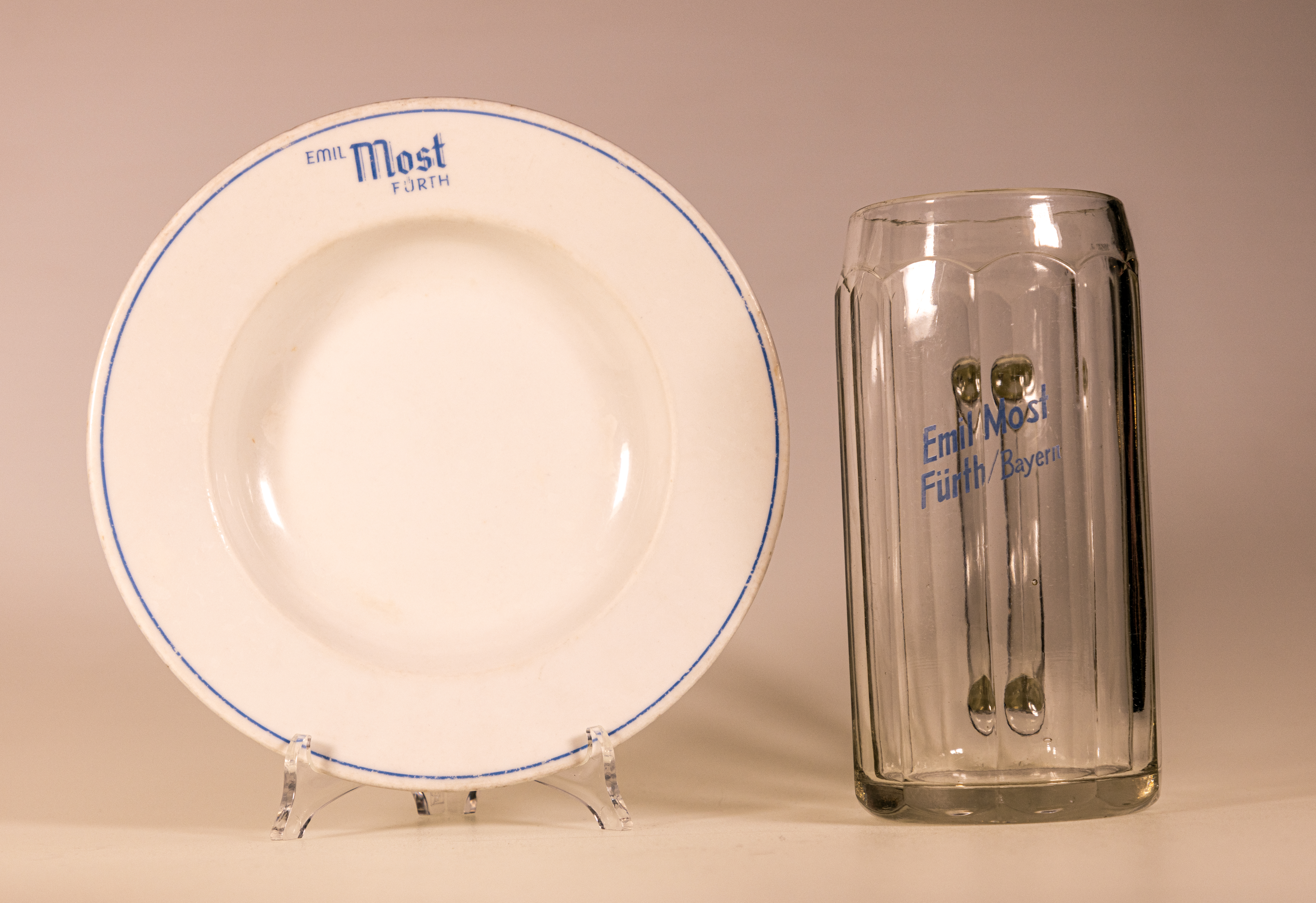 | Beschreibung | Suppenteller und Maßkrug des Geismannsaal-Pächters und Festwirt Emil Most | ||