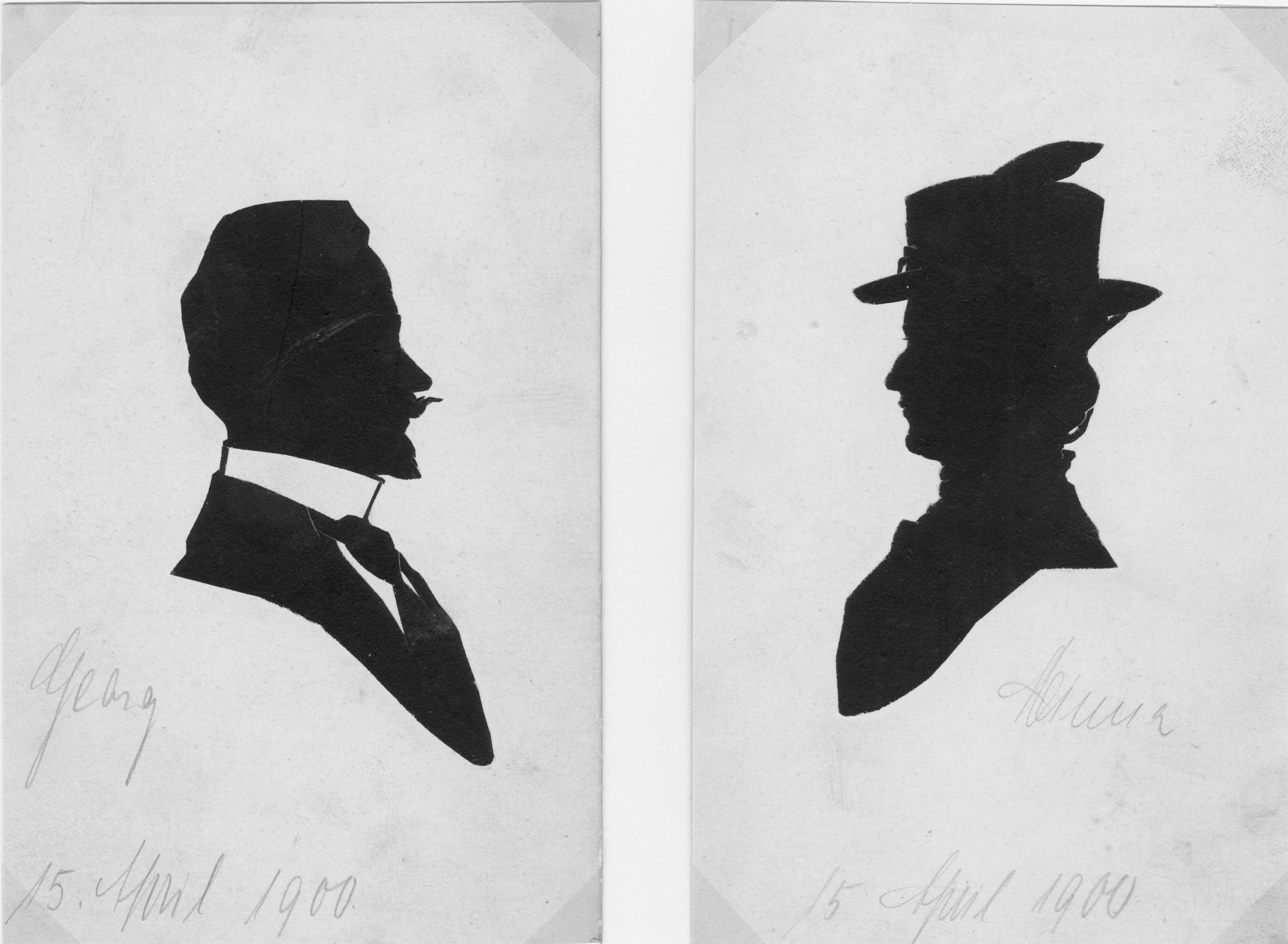 | Beschreibung | Scherenschnitt Georg und Wilhelmine Schmidtschneider, 1900 | ||