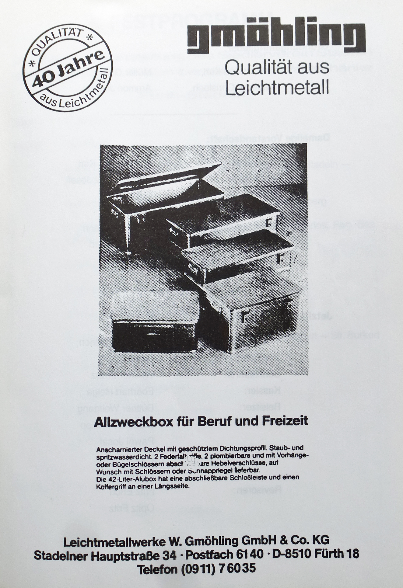 | Beschreibung | Werbung der Fa. Gmöhling in der Festschrift 40 Jahre Siedlerverein Stadeln, 1986 | ||