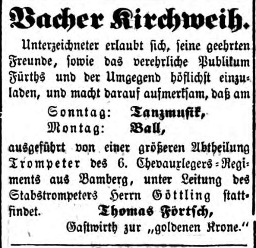 | Beschreibung | Kirchweih in Vach in der goldenen Krone, September 1856 | ||