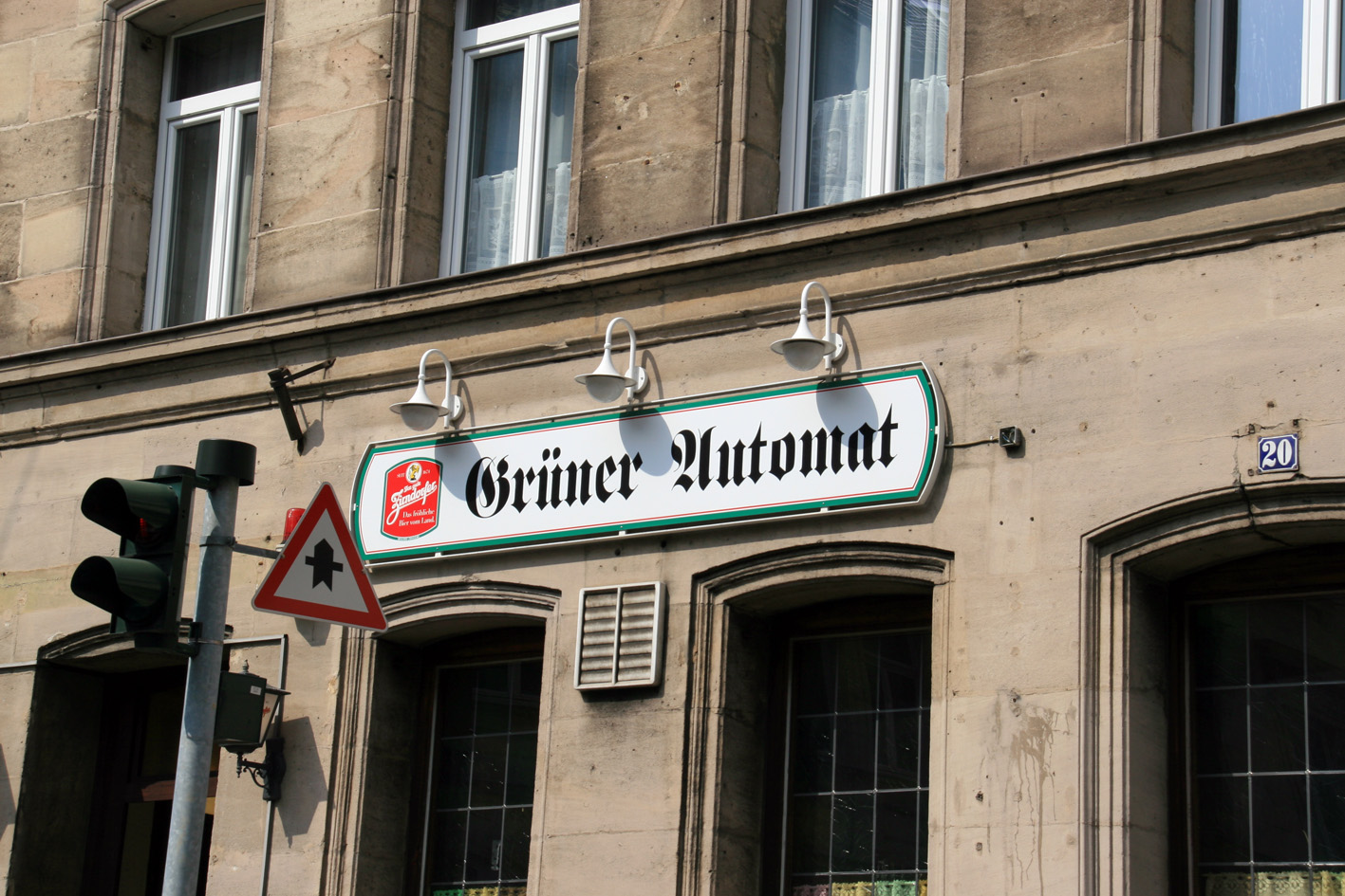 | Dateiinfo (Bild-Unterschrift und Info-Box, automatisch erstellt) | Gaststätte Grüner Automat in der Hirschenstraße Urheber: Kamran Salimi<br><br>Lizenz: CC BY-SA 3.0 | ||