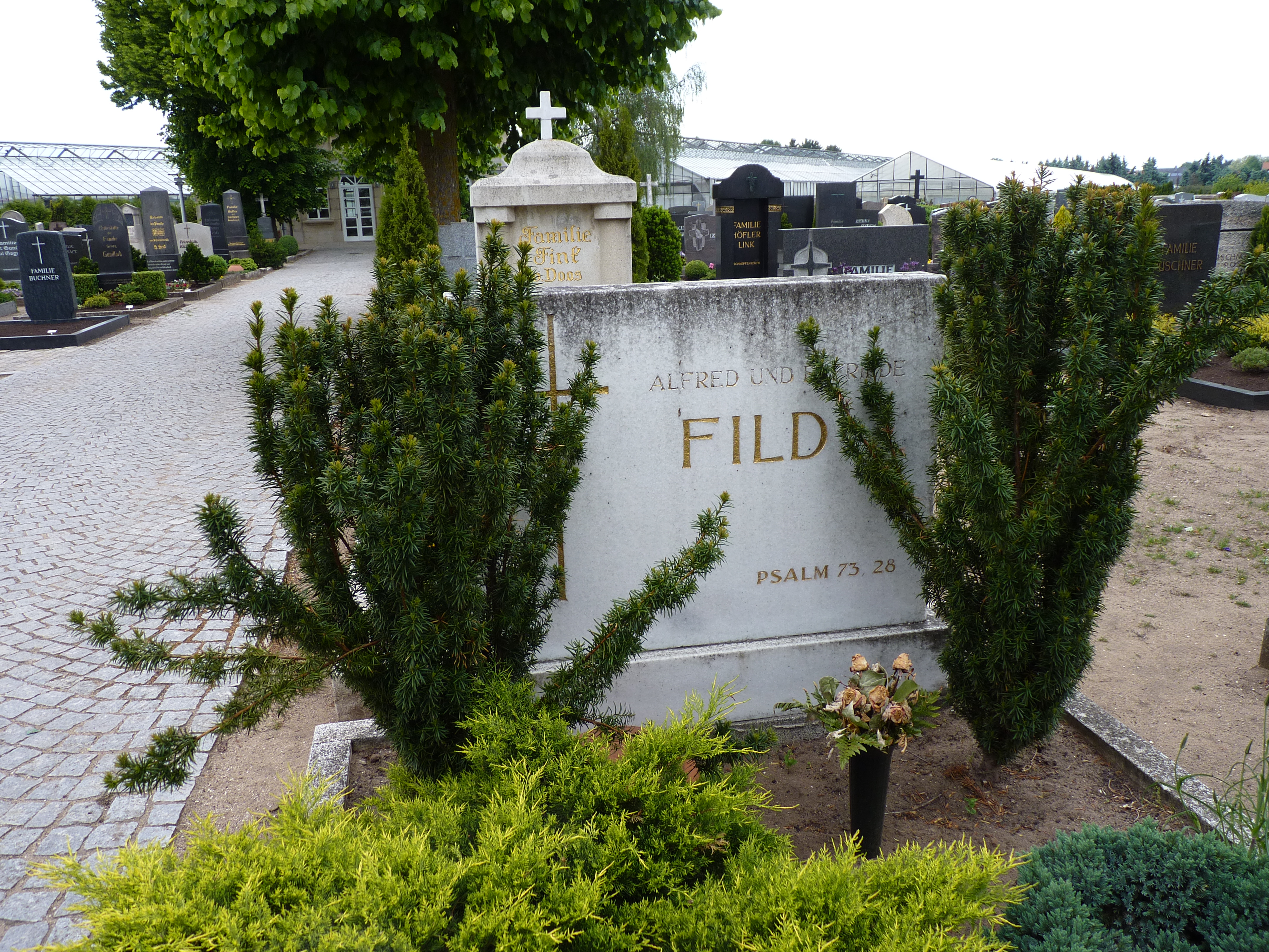 | Dateiinfo (Bild-Unterschrift und Info-Box, automatisch erstellt) | Grab Dr. Dr. Horst Fild, Friedhof Poppenreuth Urheber: Chrischmi<br><br>Lizenz: CC BY-SA 3.0 | ||