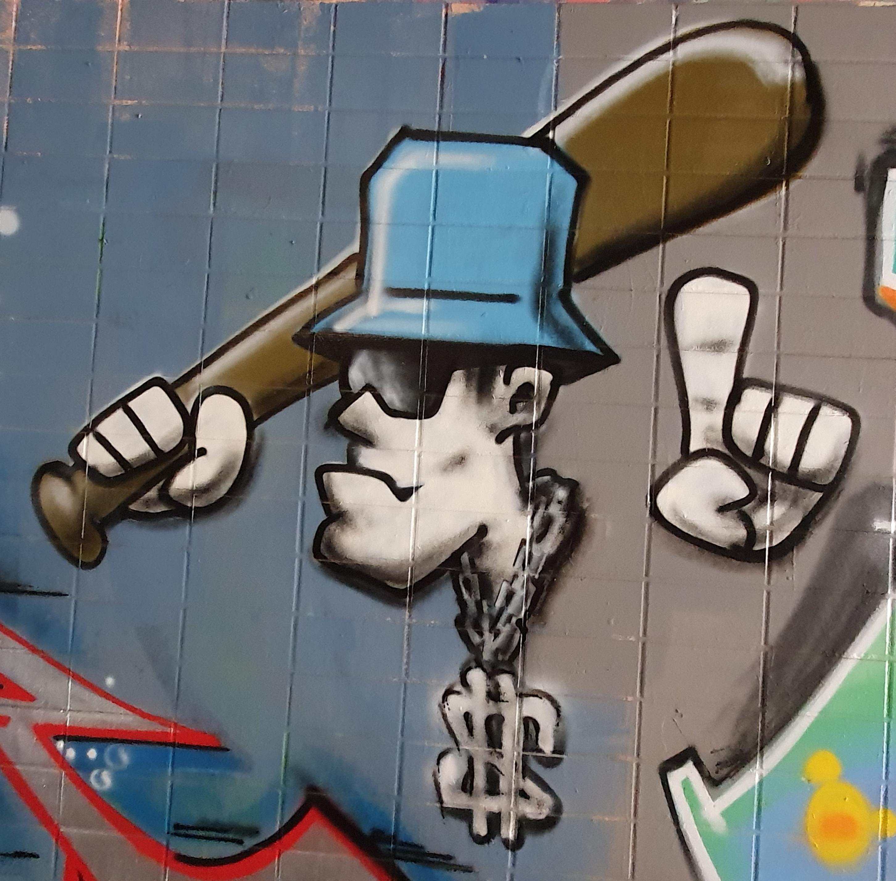 | Datei:Graffiti 1 Unterführung Mühlstraße Ausschnitt.jpg | |||
