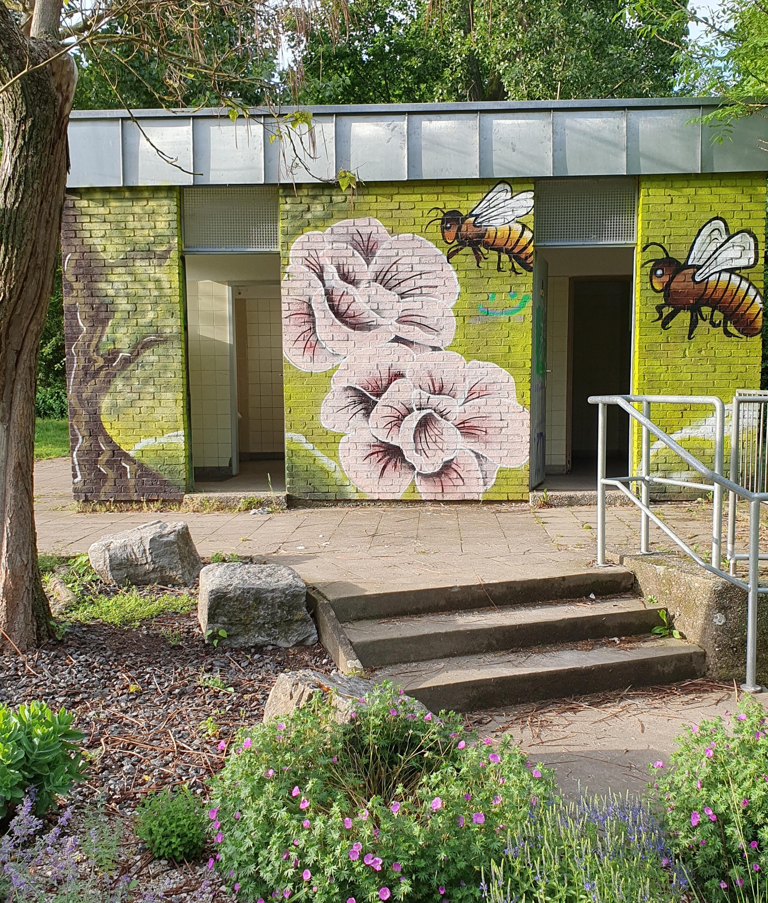 | Beschreibung | Graffiti 2 Toilettenhäuschen Kleine Mainau Südseite | ||