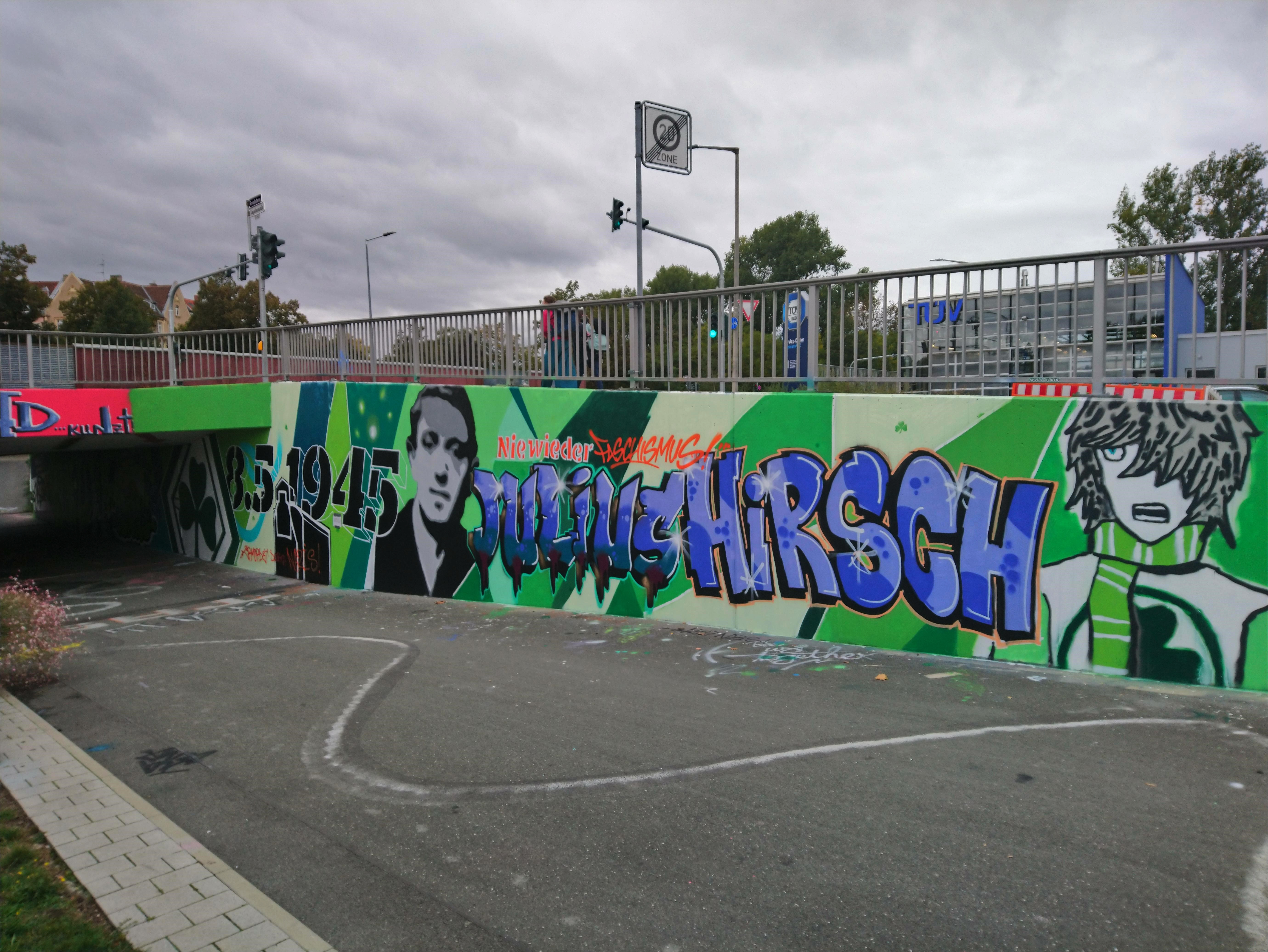 | Beschreibung | Graffiti Julius Hirsch an der Unterführung Kapellenstraße | ||