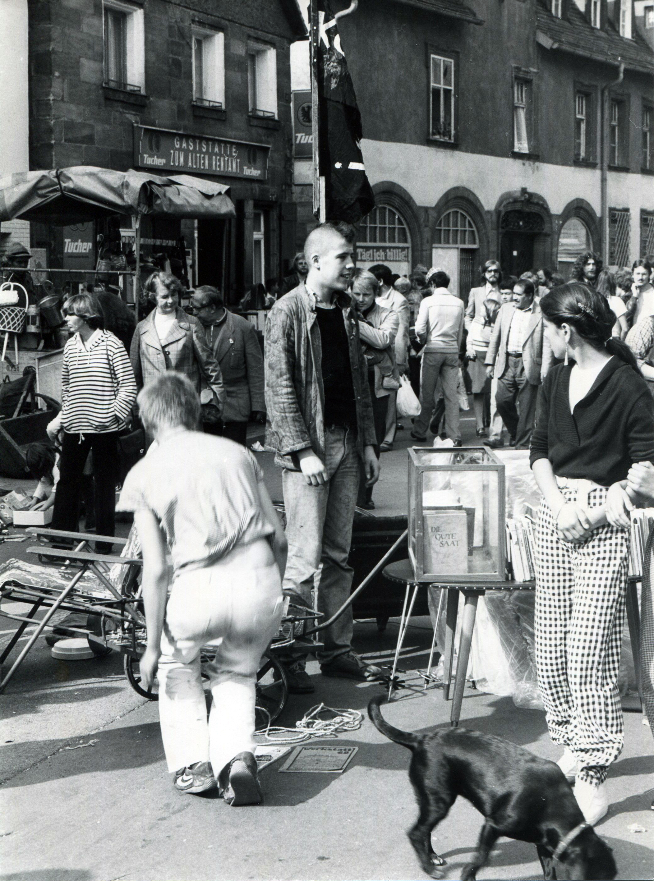 | Beschreibung | Grafflmarkt in der Gustavstraße, im Hintergrund die Gaststätte Zum Alten Rentamt, ca. 1985 | ||