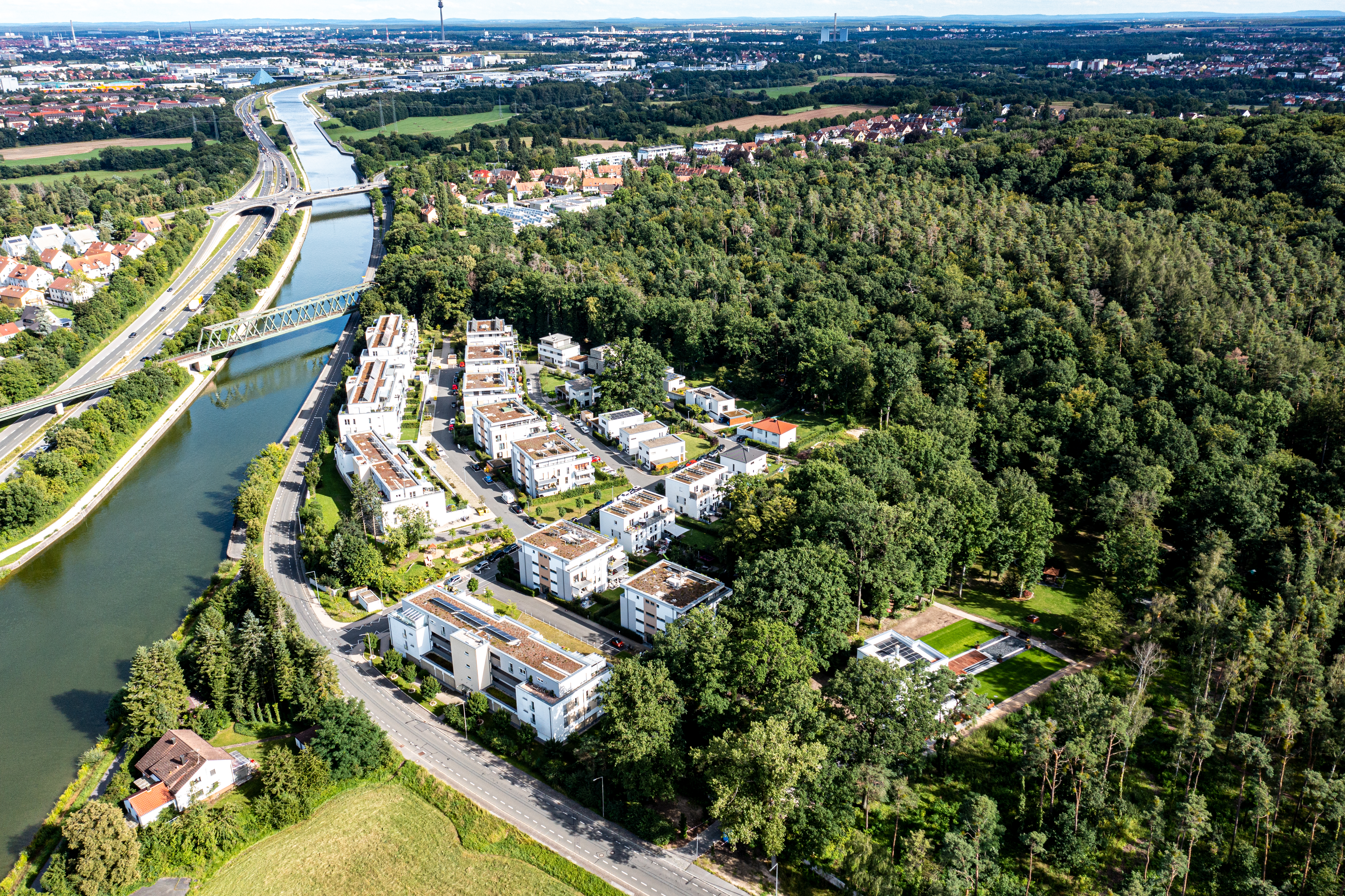 | Beschreibung | Blick über die 2012 entstandenen Wohnanlage Grundigpark, zuvor Grünanlage der Grundig-Villa, August 2021 | ||