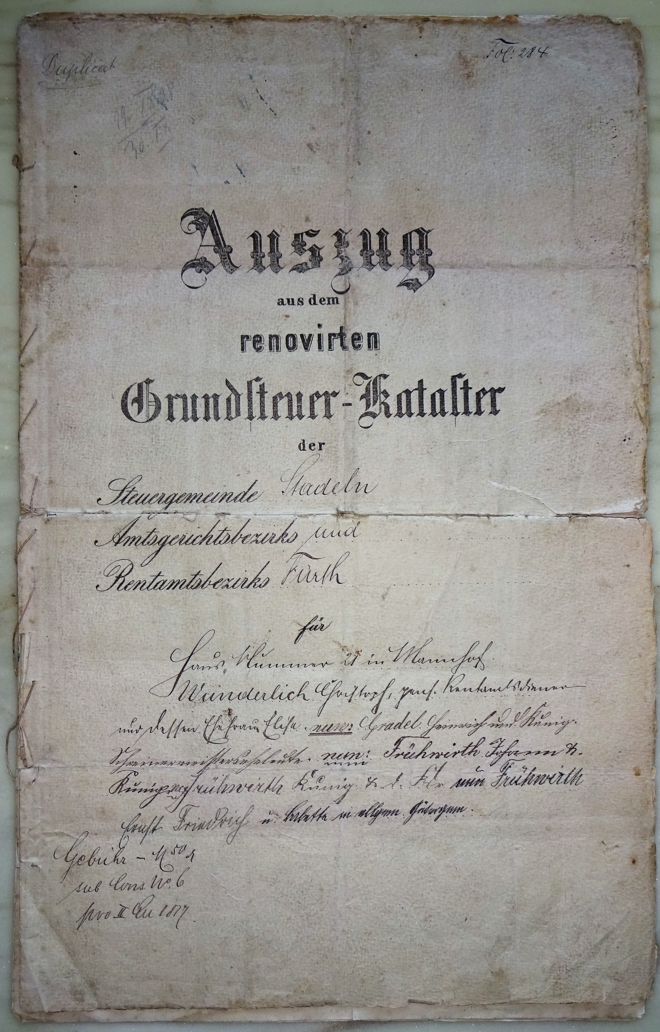 | Datei:Grundsteuer Kataster Auszug Stadeln 1900.1.jpg | |||
