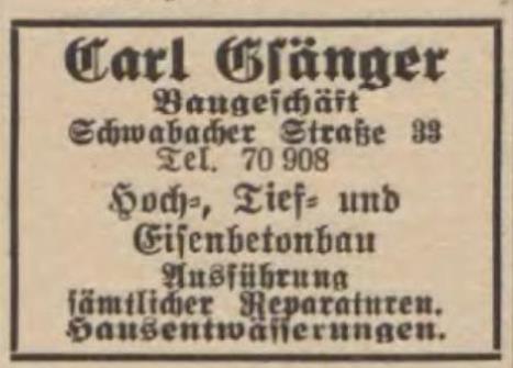 | Beschreibung | Werbung im Fürther Adressbuch von 1931 der Firma Carl Gsänger | ||