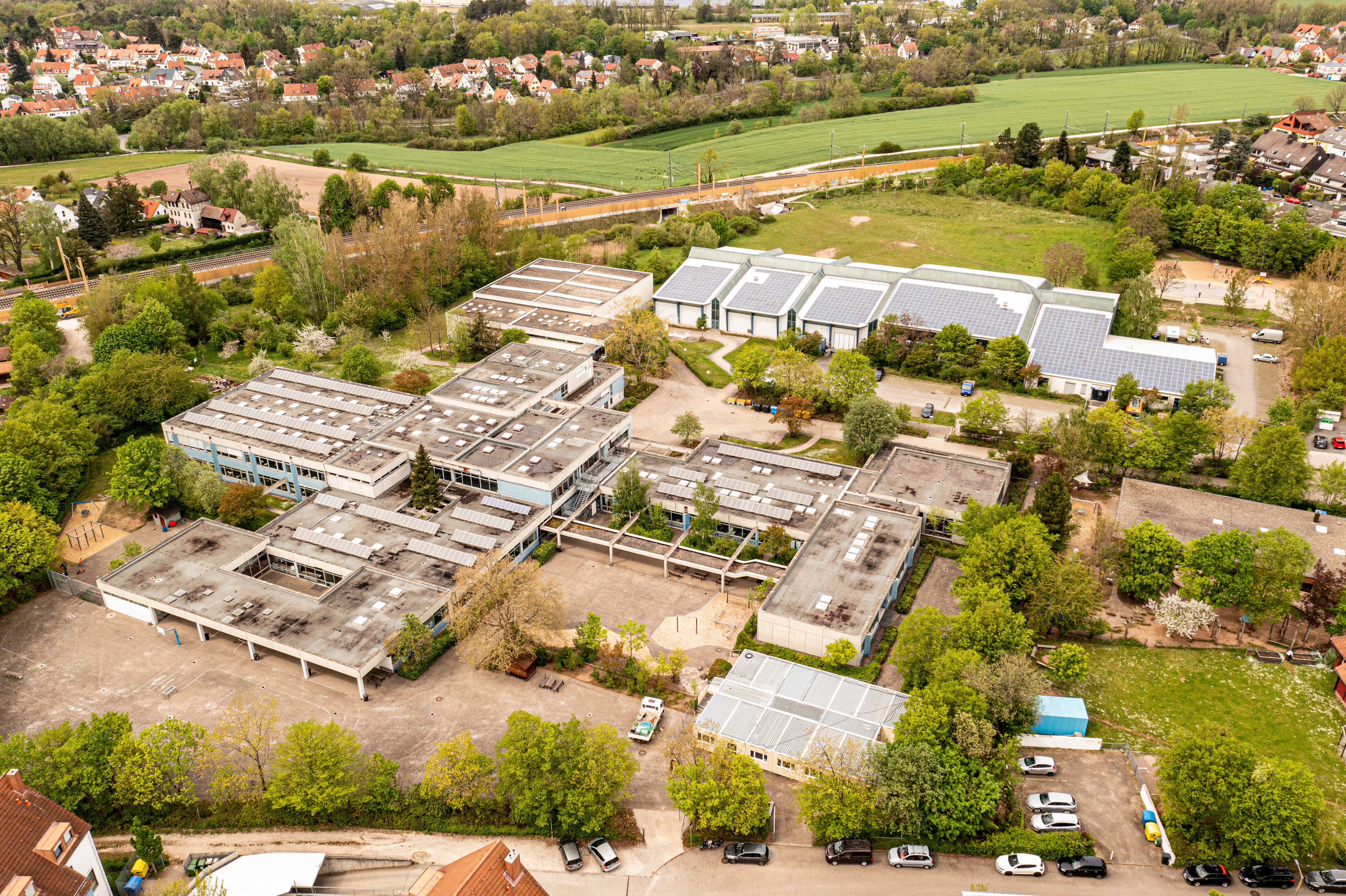 | Beschreibung | Die Dr.-Gustav-Schickedanz-Schule, im Hintergrund die LAC Quelle Turnhalle, Mai 2021 | ||