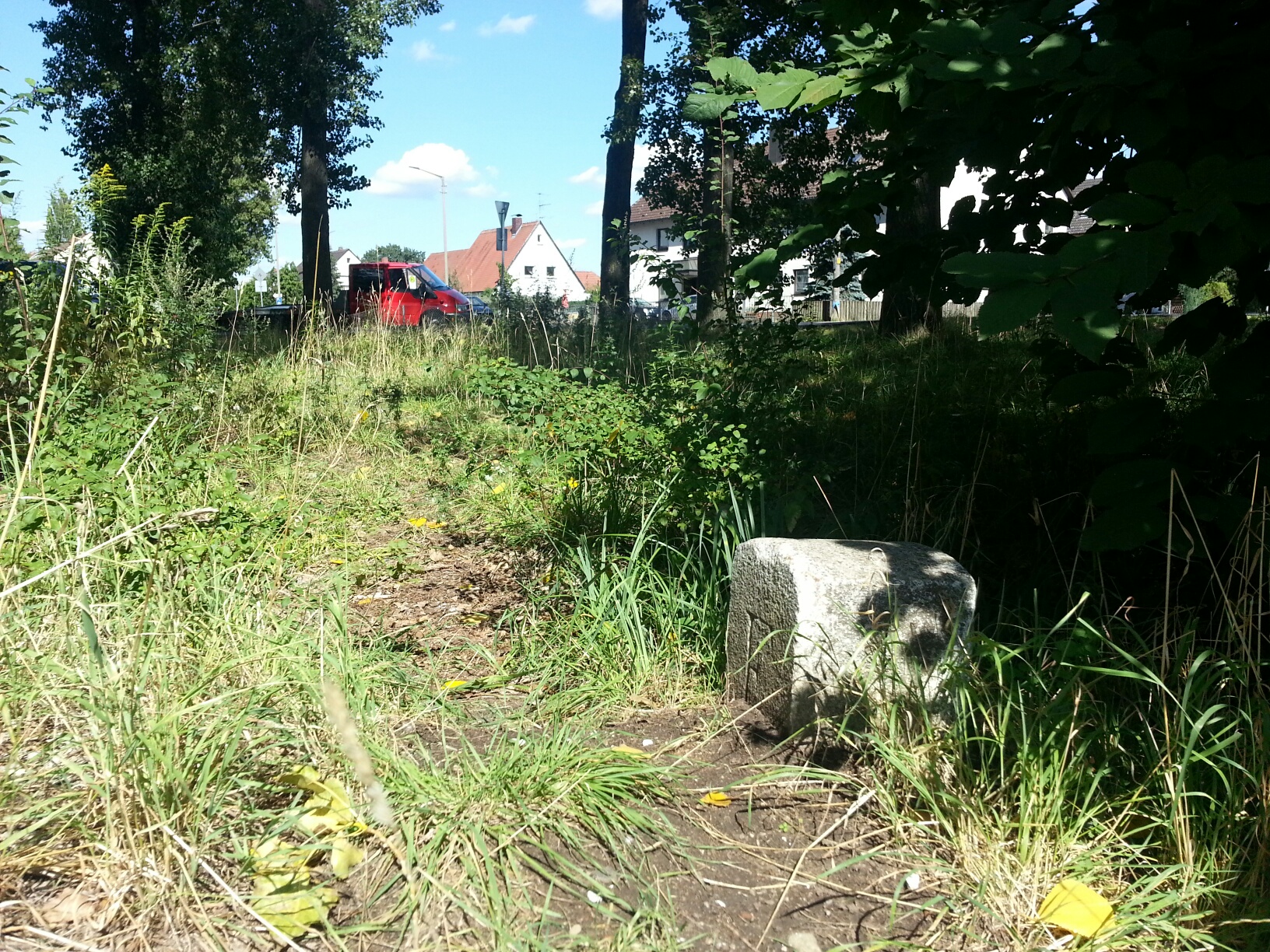 | Beschreibung | heutiger Mündungsbereich der Höfener Spange - ehemals Pappelwald an der Höfener Straße, Einmündung Oststraße; alter Grenzstein mit Markierung 'F' und 'N' am Verlauf des ehemaligen Weidiggrabens | ||