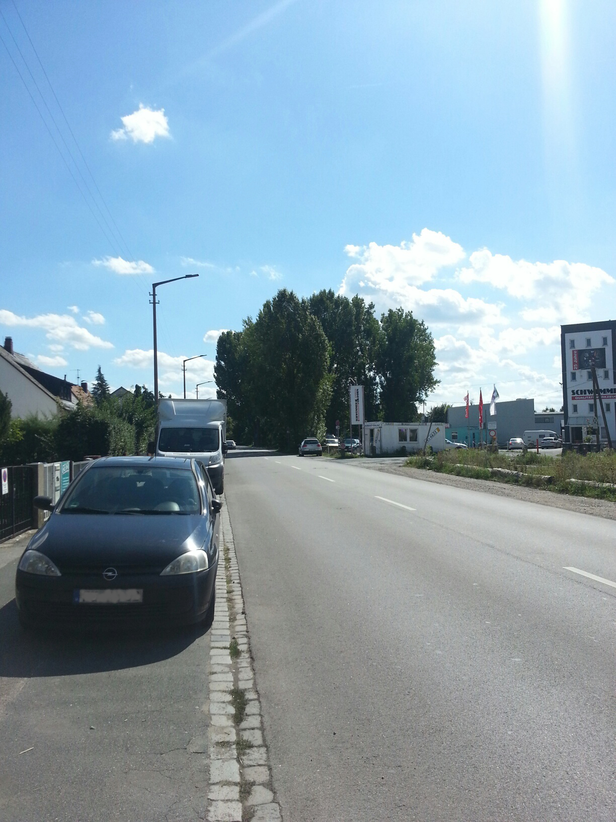 | Beschreibung | ehemaliger Zustand des Kreuzungsbereichs der Höfener Spange mit der Höfener Straße von Norden aus gesehen. Pappelwald an der Einmündung zur Oststraße. Rechts im Bild die Fa. Schwemmer & Dorn | ||