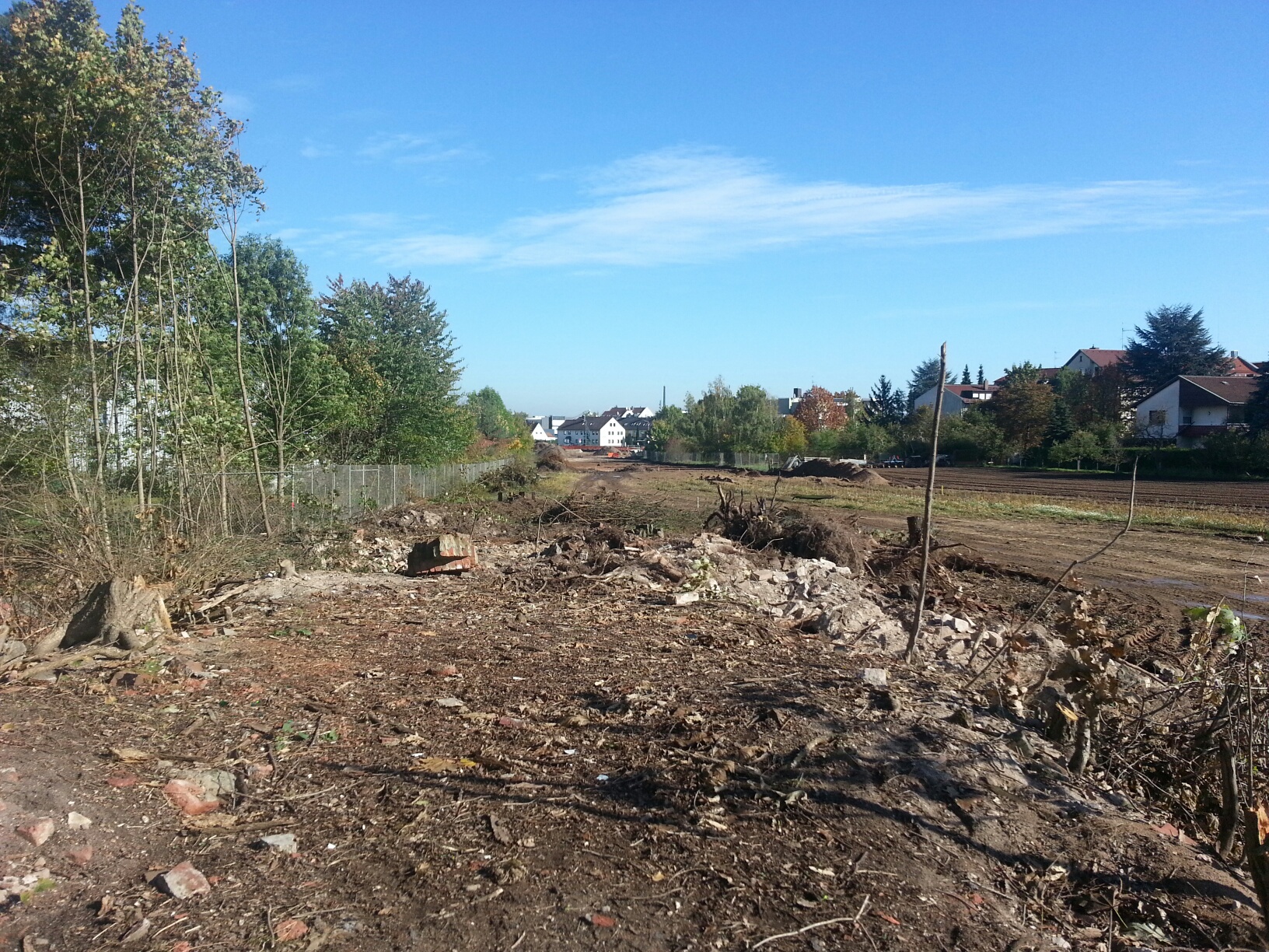 | Beschreibung | Zukünftige Trasse der Höfener Spange - Blick nach Nordosten auf Höhe der Hermann-Glockner-Straße nach Rodung, rechts im Bild Häuser der Lotharstraße | ||