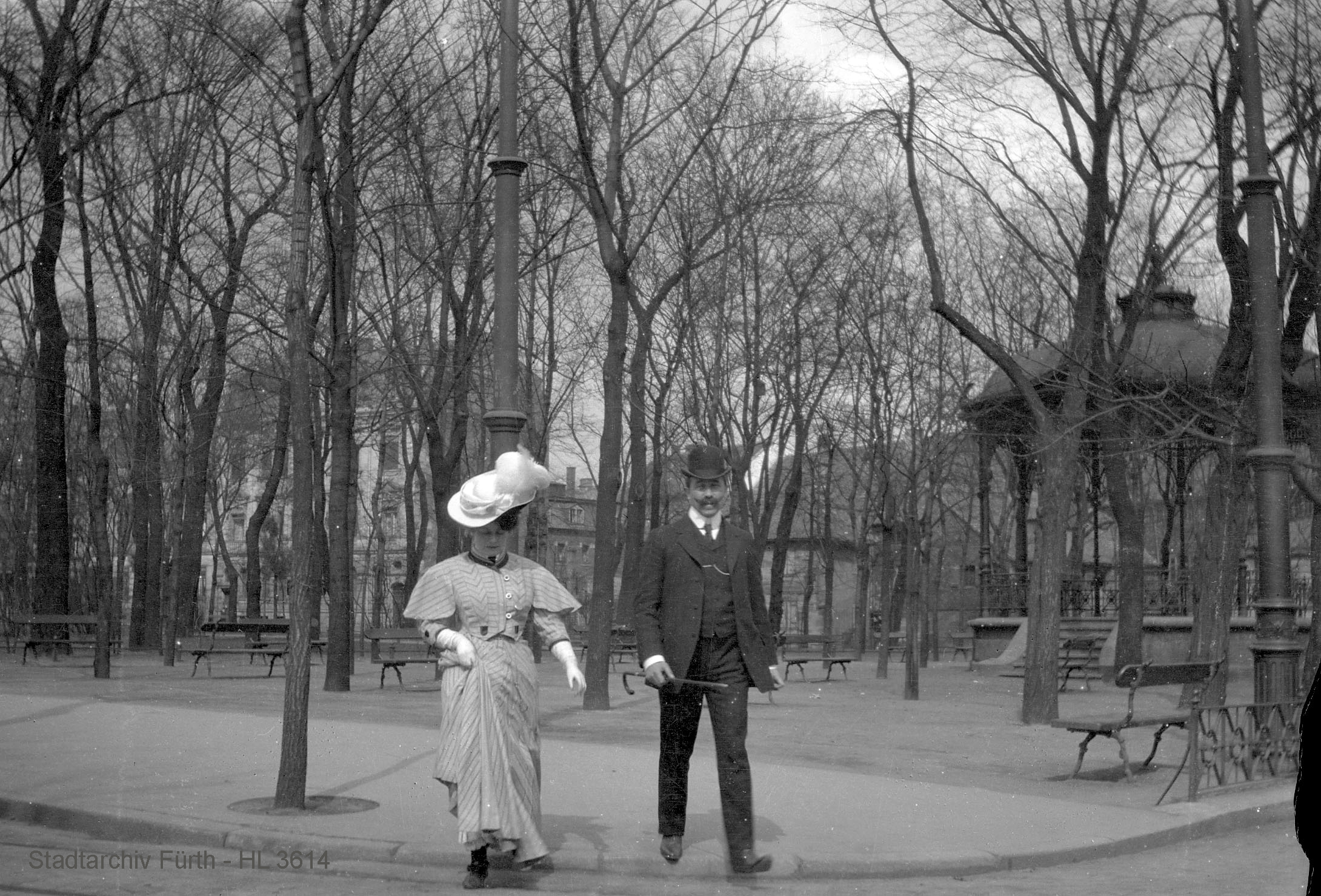 | Beschreibung | Blick in die heutige Dr.-Konrad-Adenauer-Anlage (ehem. Englische Anlage) an der Fürther Freiheit, ca. 1910 | ||