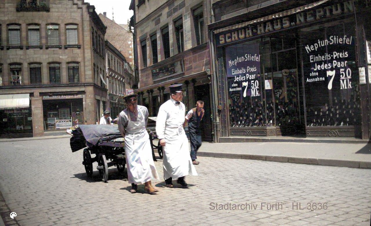 | Dateiinfo (Bild-Unterschrift und Info-Box, automatisch erstellt) | Blick in die Sternstraße, rechts Schuh-Haus Neptun, im Hintergrund Möbelfabrik Andreas Beer und ... Blick in die Sternstraße, rechts Schuh-Haus Neptun, im Hintergrund Möbelfabrik Andreas Beer und Lebensmittelgeschäft Jean Rust, ca. 1910; Kolorierung mit MyHeritage in Color (tm)<br>Urheber: Johann Georg Heinrich Lotter<br><br>Lizenz: Bildlizenz-Stadtarchiv | ||