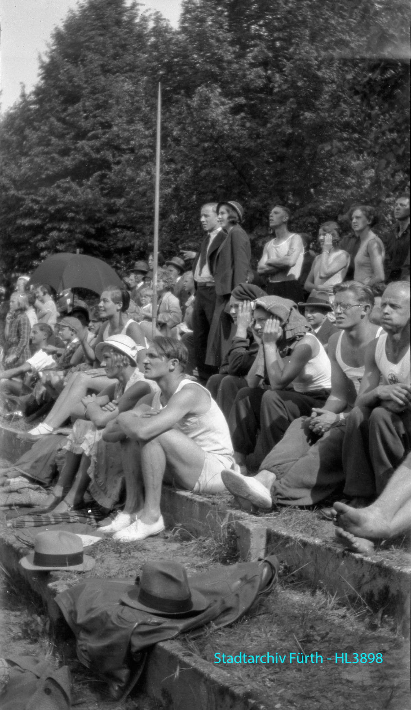 | Dateiinfo (Bild-Unterschrift und Info-Box, automatisch erstellt) | Bei einer sommerlichen Leichathletik-Veranstaltung im Ronhof Urheber: Johann Georg Heinrich Lotter<br>Lizenz: Bildlizenz-Stadtarchiv | ||